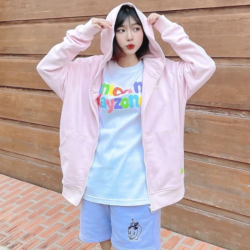 ÁO KHOÁC HOODIE UNISEX FORM RỘNG NỈ KÉO KHÓA DÂY RÚT Chất Liệu: vải nỉ dày dặn, có thấm hút Freesize 40 - 60 kg, dưới 1m63 mặc vừa đẹp Màu sắc: Đen - Hồng
