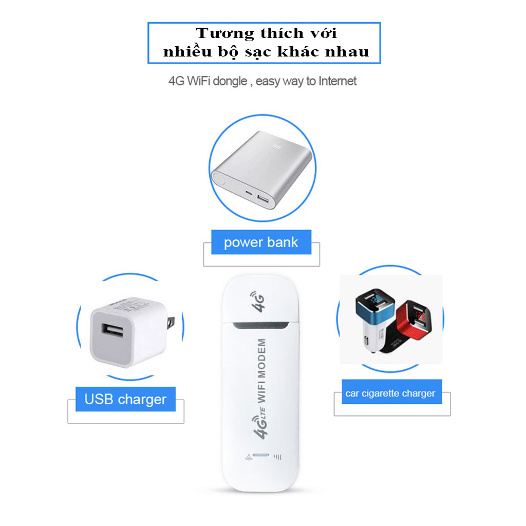 - Lướt nét vù vù !!! Cục phát wifi 4G LTE usb cho xe ô tô, taxi, xe khách... có thể cắm cổng usb máy tính, tẩu sạc xe hơi hoặc cốc sạc điện thoại... cực kỳ tiện lợi. (logo, chữ in trên thiết bị có thể khác nhau theo đợt nhập hàng, phụ thuộc vào đơn hàng từ NSX .. tuy nhiên việc này không ảnh hưởng đến chất lượng sản phẩm khách nhé.) CHỈ CẦN GẮN SIM VÀO USB CẮM VÀO NGUỒN ĐIỆN LÀ SÀI ĐƯỢC NGAY. Kết nối nhanh chóng ổn định! ===Tính năng nổi bật của USB PHÁT WIFI 4G LTE MODEM === 1.Thiết bị được thiết kế nhỏ gọn, trọng lượng nhẹ dễ dàng di chuyển cầm mang theo. Phù hợp với nhu cầu sử dụng cho xe ô tô, taxi, grab, uber...hoặc các bạn đi phượt, du lịch... 2.Tốc độ cao: Công nghệ mạng LTE 4G cho tốc độ download lên tới 150Mbps/s và phù hợp cho cả sim 3G và sim 4G. 3.Bộ phát wifi 4G Dongle sử dụng được tất cả sim các nhà mạng GSM 3G 4G tại Việt Nam như: Viettel, Mobifone, Vinaphone,Vietnamobile, iTel, Reddy ... Và tương thích với tất cả các mạng di dộng GSM trên thế giới.