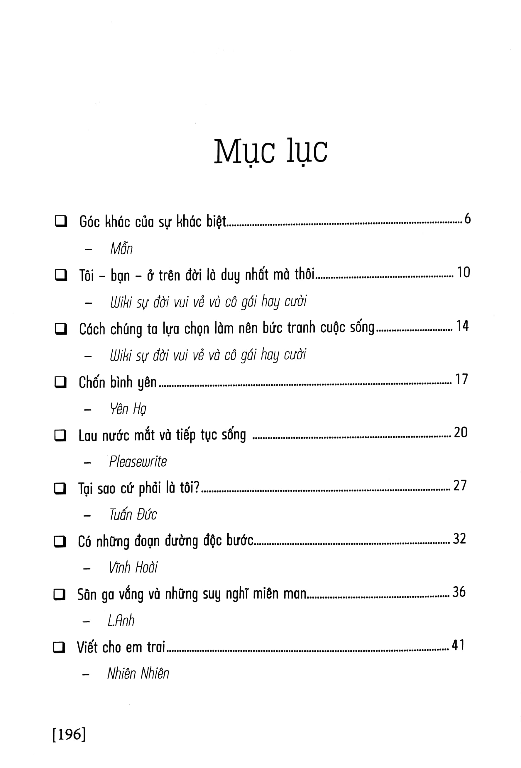 Lưu ý : Sách chỉ tặng quà cho bản in đầu tiên Trong hành trình trưởng thành của mình, chúng ta sẽ gặp gỡ được vô số người: Có người chiến đấu với thời gian, có người sợ thua kém bạn bè. Cũng có người mỗi ngày mở mắt, mỗi tối khép mi đều chỉ tồn tại cơm áo gạo tiền. Có người thấy bản thân hoảng loạn, cảm giác thua kém và tự ti khiến vô số ước mơ vì vậy mà chìm xuống vực thẳm. Hiện thực tàn nhẫn đến mức vùi lấp những ước mơ khi chúng chỉ vừa kịp nảy mầm. Có người một năm đi bệnh viện không biết bao nhiêu lần, tự mình bước vào khu vực cấp cứu. Trọn vẹn quá trình đều không rơi một giọt nước mắt. Nhưng hiển nhiên trong tim đầy gai góc, và nhiều vết sẹo đến đau lòng. Thế giới của người trưởng thành ngoài mặt bình lặng giản dị, nhưng trong lòng mỗi người đều là một trận chiến. “Đừng khóc trước khi đi ngủ” tựa một cái ôm gửi đến bạn - những người đang cảm thấy cuộc sống này không dễ dàng. Vết thương nào rồi cũng sẽ lành, nhưng nếu bạn bỏ cuộc ngay vào thời khắc ấy, người yêu thương cậu sẽ mang những vết thương mới. Sự có mặt của bạn vốn dĩ vẫn luôn có ý nghĩa với rất nhiều người. Mong bạn có thể đóng gói muộn phiền, chuyển giao vào hòm thư cũ, sống một đời rực rỡ. Mắt bạn đẹp như vậy, cười lên xinh biết bao. Bạn cười lên rất đẹp, nhớ cười nhiều một chút, nhất định phải vì chính mình mà vui vẻ sống. “Bất cứ khi nào bạn mệt mỏi, hãy tin rằng thế giới bao la, biển người rộng lớn, sẽ luôn tồn tại nơi chốn để bạn nương náu tâm hồn, yên ổn sống tốt phần đời sau này. Chúc bạn xuân sang, hạ qua dịu dàng, thu đến, đông tàn bình an”. Cảm ơn vì sau hàng ngàn lần bật khóc, bạn vẫn kiên cường bước tiếp.