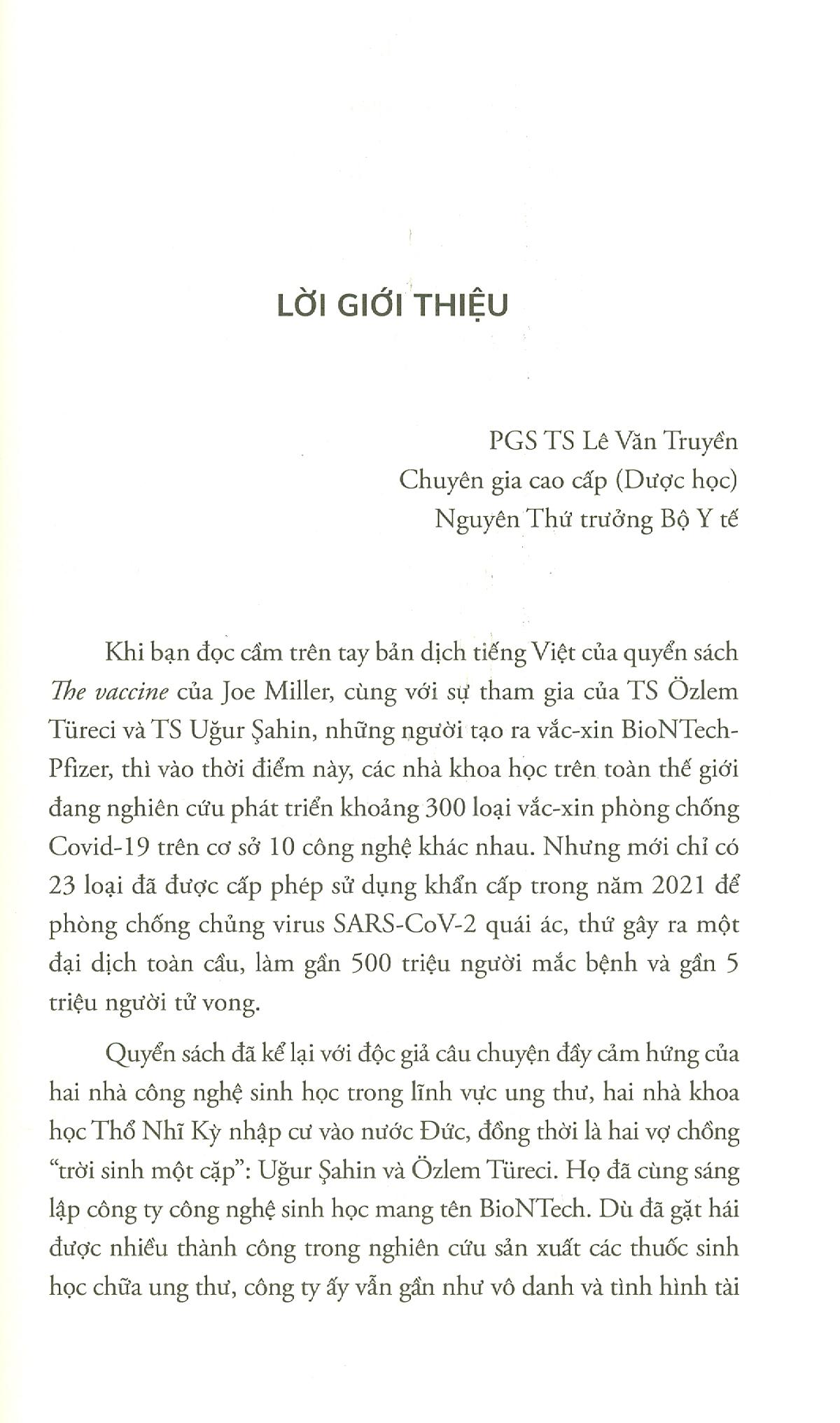 Cuốn sách giúp chúng ta đồng hành cùng hai nhà khoa học Özlem Türeci và Uğur Şahin, cùng với những nhân viên của họ trong công ty BioNTech, trên con đường tìm ra loại vắc-xin cứu giúp con người thoát khỏi thảm họa dịch bệnh. Đó là loại vắc-xin COVID-19 BioNTech-Pfizer sử dụng công nghệ mRNA.