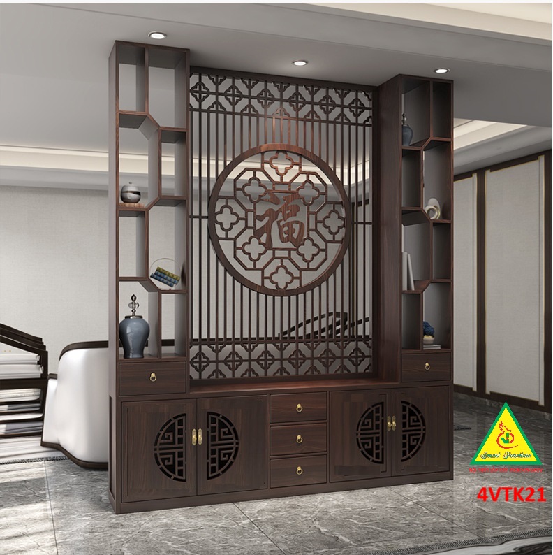 Vách ngăn còn có tủ giúp lưu trữ những vật dụng cá nhân của gia chủ , tận dụng được không gian sống tốt hơn. Sản phẩm lắp ráp dễ dàng di chuyển khi cần thiết.