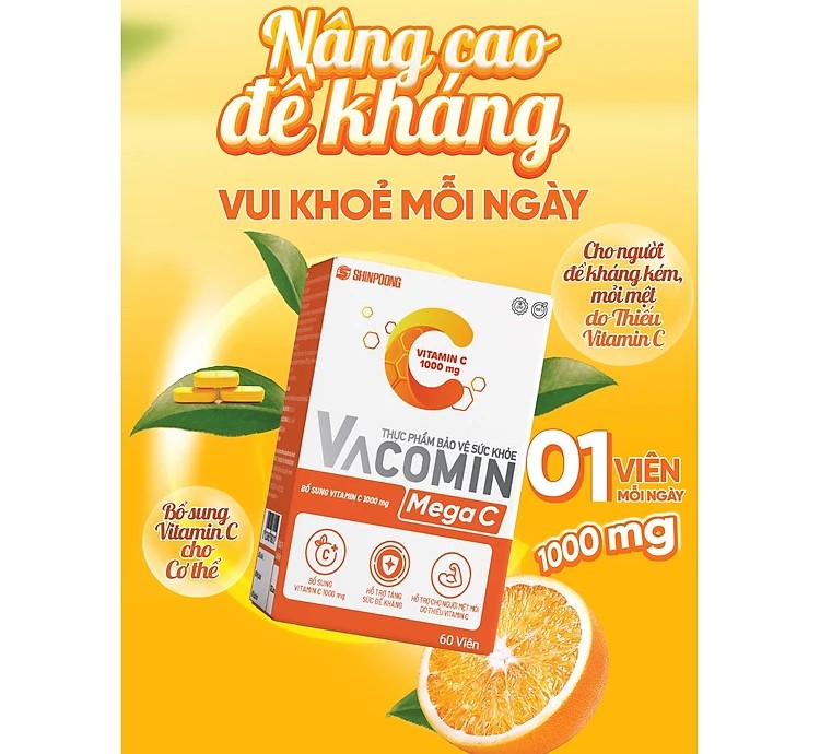 THỰC PHẨM BẢO VỆ SỨC KHỎE | VACOMIN MEGA C - Viên uống bổ sung vitamin C, Hỗ trợ tăng đề kháng, hấp thu sắt, năng lượng, đẹp da - SHINPOONG (60 Viên)
