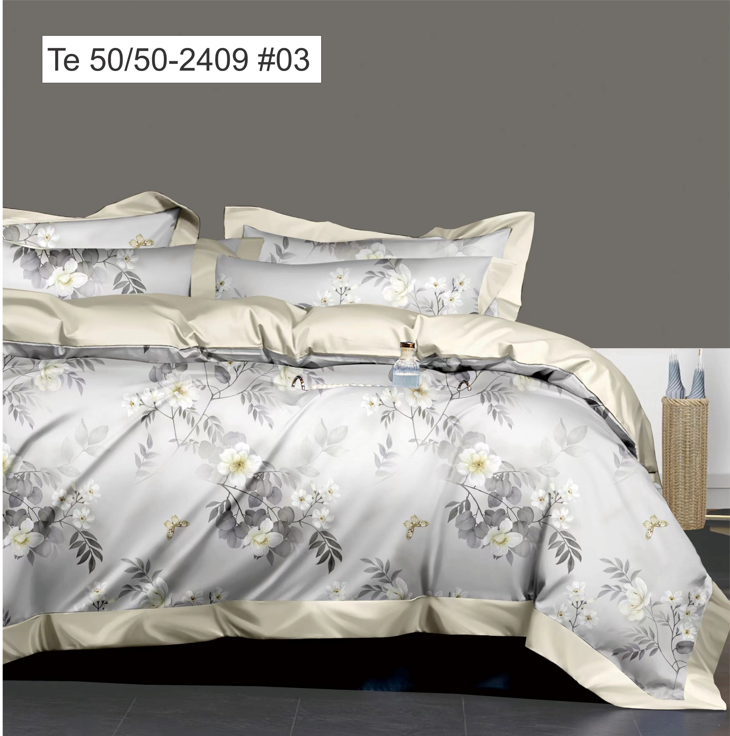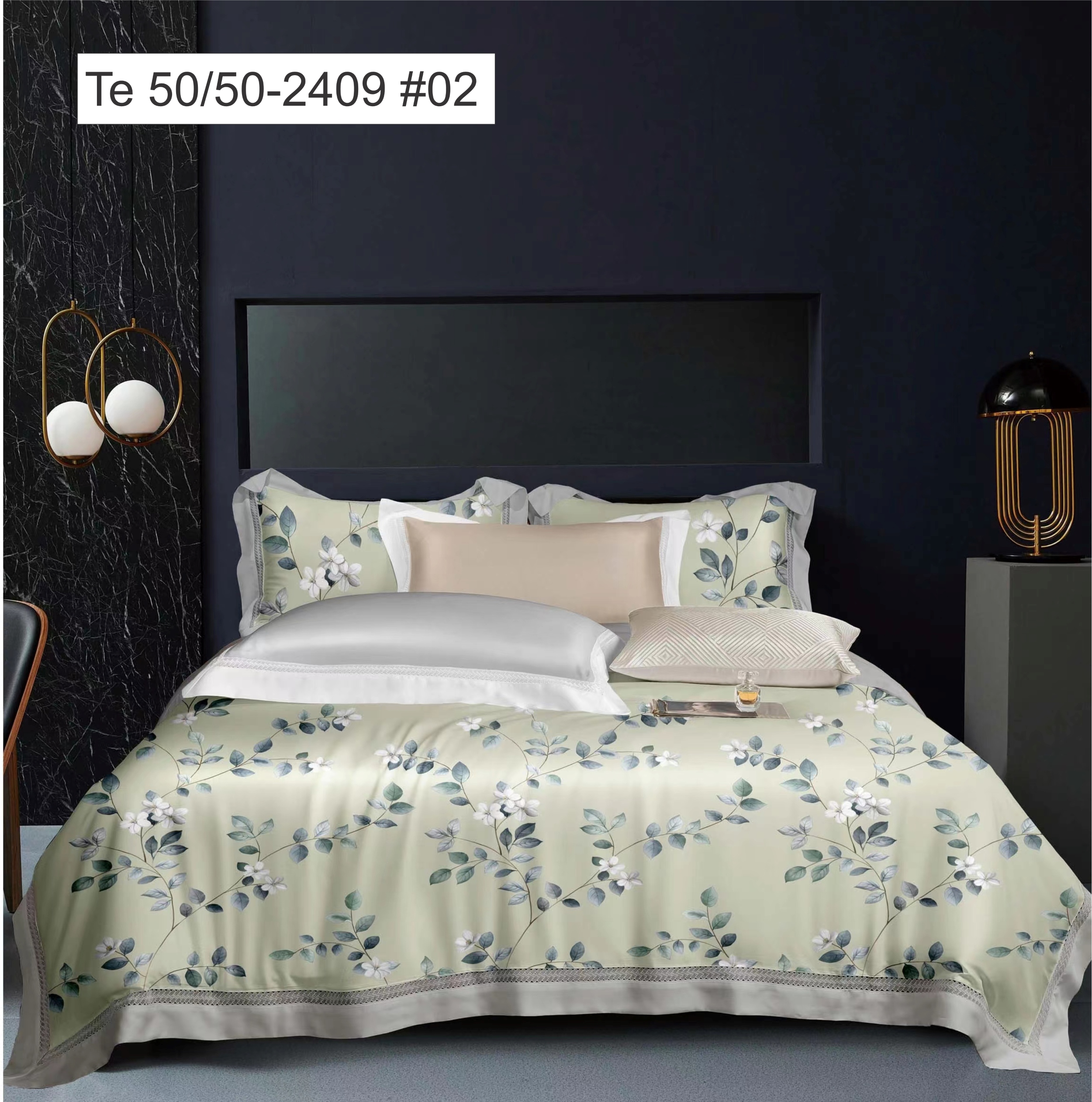 Bộ chăn ga gối Tencel 100% cao cấp Hoạ tiết Hoa xanh