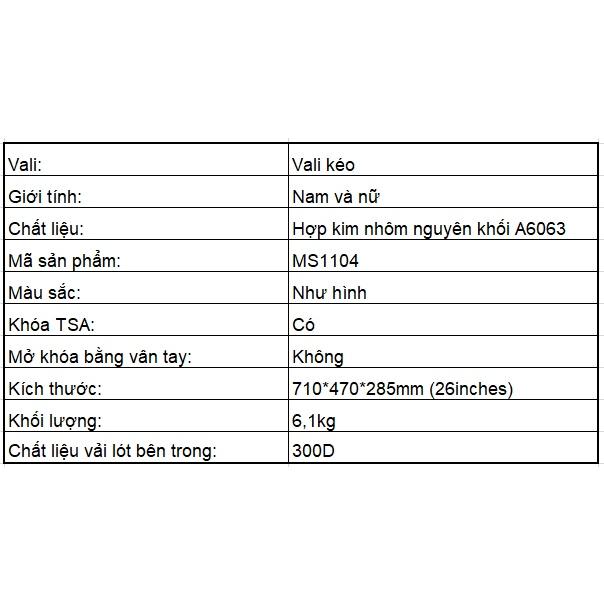 Vali nhôm nguyên khối Macsim. trang bị khóa tiêu chuẩn TSA , tích hợp mở khóa vân tay. LH 0368726132