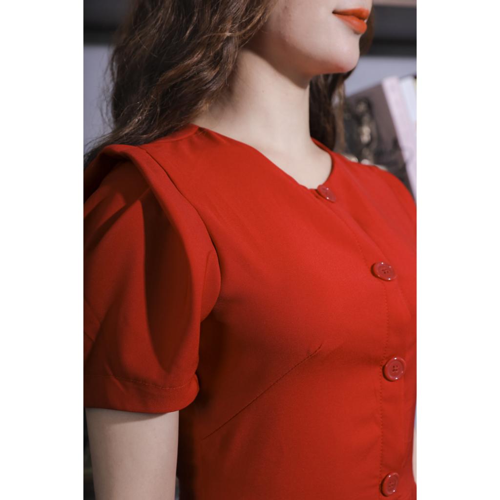 Váy Vải Trơn Cúc Trước Màu Đỏ Pi Home Of Beauty Made With Love 23V059