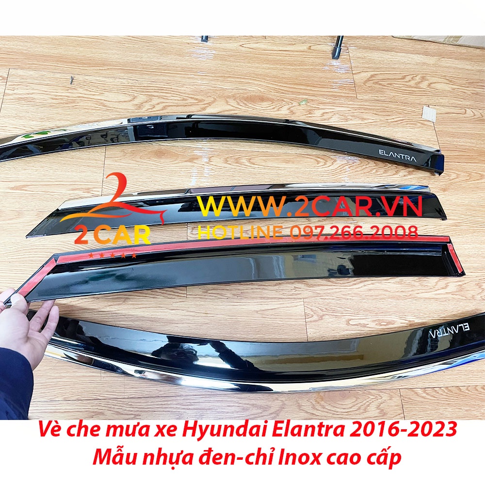 Vè che mưa xe Huynda Elantra 2016- 2023 chỉ inox cao cấp nhất thị trường là sản phẩm được thiết riêng cho Hyundai Elantra 2016 - 2019, kích thước, tỉ lệ vừa ôm khít với cửa xe, tăng tính thẩm mỹ, sang trọng cho xe.