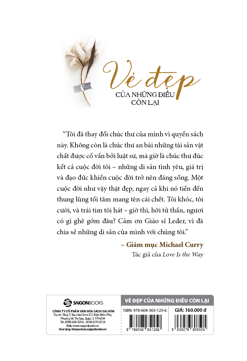 VẺ ĐẸP CỦA NHỮNG ĐIỀU CÒN LẠI  Hiểu về cái chết để trân trọng sự sống Bạn đã hiểu điều gì về cái chết? Theo y học, chết hay qua đời thông thường được xem là sự chấm dứt vĩnh viễn mọi hoạt động sống của một cá nhân. Tuy nhiên, định nghĩa của sự chết còn tùy thuộc vào các quan điểm khác tôn giáo, tín ngưỡng cũng như các lĩnh vực liên quan.   Trong xã hội của chúng ta, bản chất của cái chết và sự nhận thức của con người về cái chết là các mối quan tâm qua hàng thiên niên kỷ của thế giới tôn giáo và triết học. Về cơ bản, con người chúng ta thường có xu hướng “tham sống sợ chết”, tuy nhiên, trong những hoàn cảnh nhất định, nhiều người có thể hi sinh sự sống của mình vì người khác, vì cộng đồng, cũng có những người tự tìm đến cái chết do những chứng bệnh tâm thần hoặc để thoát khỏi những bế tắc trong cuộc sống.   Thông thường, chúng ta thường có 5 đặc điểm khi đối diện với cái chết cận kề:      1. Chối bỏ thực tế ("không thể tin là mình sắp chết")          2. Nổi giận, nổi loạn ("tại sao tôi phải chết?")          3. Mặc cả với số phận ("sao lại là tôi, nhiều người xấu hơn tôi vẫn được sống kia, tôi đã làm nhiều việc tốt nên tôi phải được sống")          4. Trầm cảm          5. Buông xuôi, chấp nhận.   Tuy nhiên, 5 đặc điểm này không phải lúc nào cũng thể hiện đầy đủ, trật tự xuất hiện cũng không cố định. Chúng có thể xuất hiện riêng lẻ hoặc đồng thời. Và cũng có những trường hợp, có người đón nhận cái chết một cách dễ dàng hơn.   Suy cho cùng, có lẽ hầu hết chúng ta đều thường có cảm giác sợ hãi khi nói về cái chết và không dám đối mặt với nó. Vì thế, để hiểu hơn về cái chết, thì quyển sách “Vẻ đẹp của những điều còn lại” chắc chắn sẽ giúp được bạn.   Sách Vẻ Đẹp Của Những Điều Còn Lại | The Beauty of What Remains   “Vẻ đẹp của những điều còn lại” - Hiểu về cái chết để trân trọng sự sống Quyển sách “Vẻ đẹp của những điều còn lại” do tác giả Steve Leder viết, ông là một giáo sĩ người Do Thái và đã chủ trì hơn 1000 tang lễ trong suốt 3 thập kỷ. Cuốn sách khuyến khích chúng ta đối mặt với cảm xúc của mình về cái chết, nhắc nhở chúng ta không sợ hãi sự kết thúc của sự sống mà hãy nắm bắt những gì nó có thể dạy ta khi ta còn nơi đây. Những câu chuyện và trải nghiệm của tác giả được ông truyền tải một cách tinh tế, khiến bạn có cảm giác như thể đang nói chuyện với một người bạn thân.   Qua nhiều cuộc trò chuyện với những người hấp hối, Giáo sĩ Steve Leder đưa người đọc vào một hành trình thay đổi với những hiểu biết sâu sắc và sự khích lệ tận tình trong việc giải phóng mọi nỗi sợ hãi về cái chết, từ đó thực sự sống một cuộc đời có ý nghĩa. Thực sự cuốn sách The Beauty of What Remains đặc biệt này cần được giới thiệu đến mọi người nhiều hơn, đặc biệt là với những ai đang trải qua nỗi đau mất người thân.   “Vẻ đẹp của những điều còn lại” là một quyển sách sâu sắc, cô đọng trí tuệ và sự thông thái mà Giáo sĩ Leder đã truyền đạt đến giáo đoàn của mình trong hơn ba thập kỷ. Ngoài ra, ông còn có khả năng khiến tất cả chúng ta cảm thấy dễ chịu, ngay cả với một chủ đề khó đề cập như cái chết. Mỗi trang của quyển sách này đều ẩn chứa thật nhiều bài học quý giá về cuộc sống và chắc chắn rằng tất cả chúng ta đều nên đọc qua một lần.