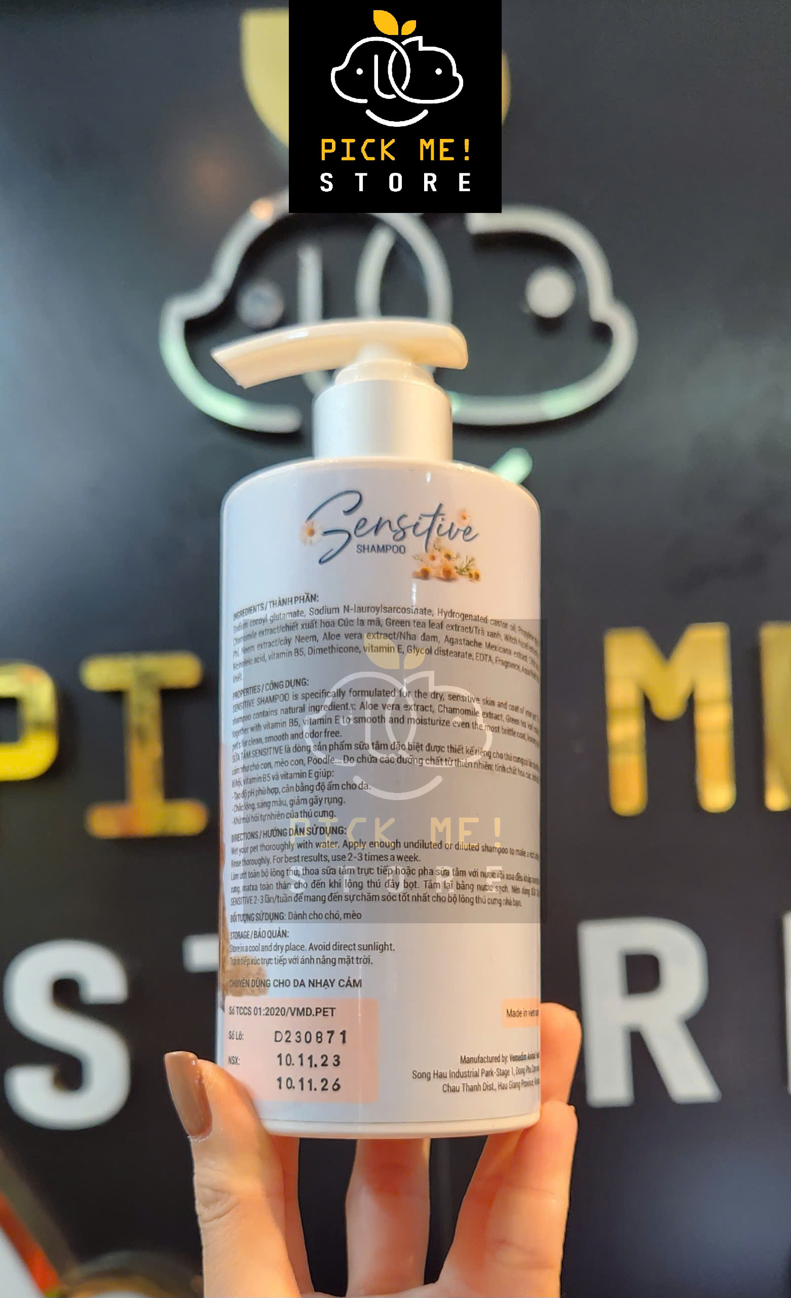 - Khử mùi hôi tự nhiên của thú cưng. LIỀU DÙNG: Làm ướt toàn bộ lông thú, thoa sữa tắm trực tiếp hoặc pha sữa tắm với nước rồi xoa đều khắp mình thú cưng, matxa toàn thân cho đến khi lông thú cưng đầy bọt. Tắm lại bằng nước sạch. Nên dùng SỮA TẮM SENSITIVE 2-3 lần/tuần để mang đến sự chăm sóc tốt nhất cho bộ lông thú cưng nhà bạn. Đối tượng: Dành cho chó, mèo BẢO QUẢN: Tránh tiếp xúc trực tiếp với ánh nắng mặt trời.