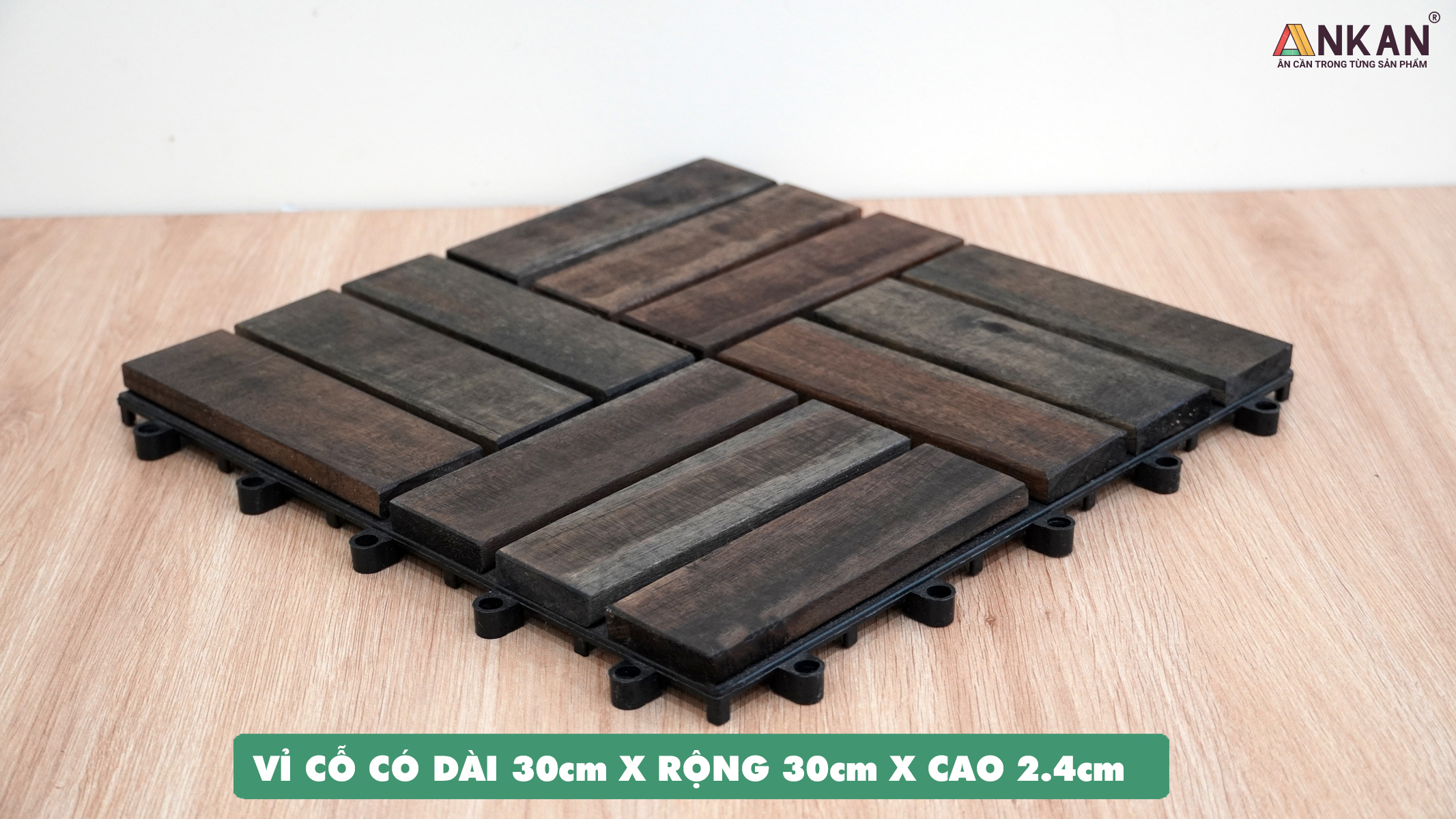 - ANKAN giao hàng nhanh, đóng thùng chắc chắn, hỗ trợ tư vấn lắp đặt và lắp đặt, hậu mãi tốt. ĐẶC ĐIỂM VỈ GỖ LÓT SÀN ANKAN Vỉ gỗ lót sàn Thương Hiệu ANKAN được sản xuất từ gỗ tràm bông vàng với sự chọn lọc kỹ, đảm bảo tuổi trên 10 năm, nên màu sắc gỗ đồng đều, tỉ trọng cao, độ bền cao so với cây non.