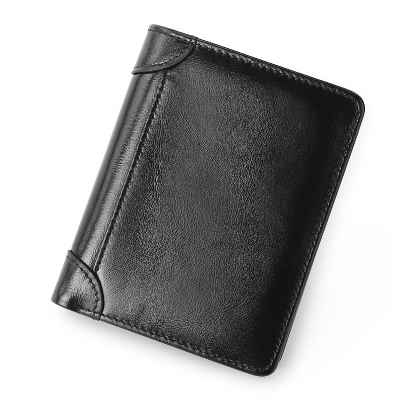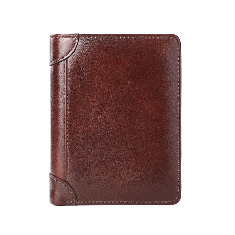 Ví mini nam da bò sáp ngựa điện Crazyhorse V125 cao cấp, bóp đựng thẻ da thật, đường chỉ tinh tế, ví nam nhỏ gọn dáng đứng,