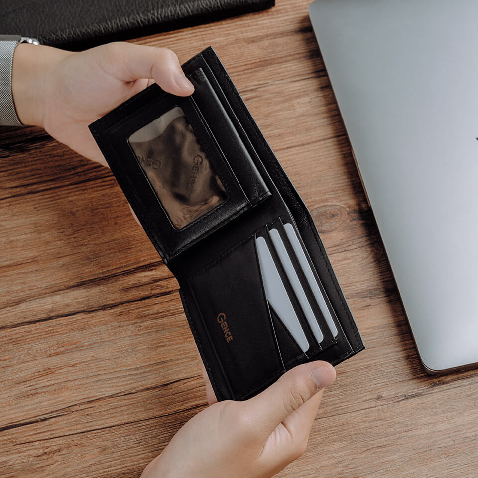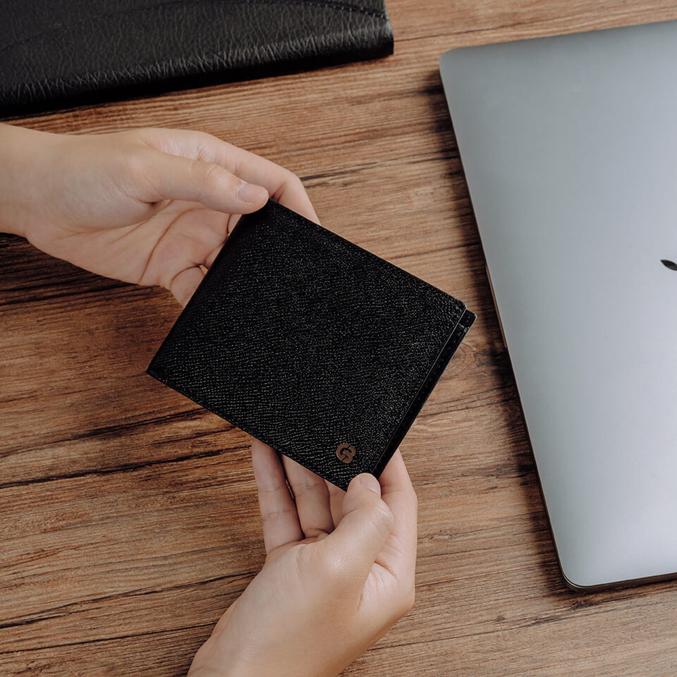 ✨Ví nam Gence dáng ngang da bò Epsom màu đen C10