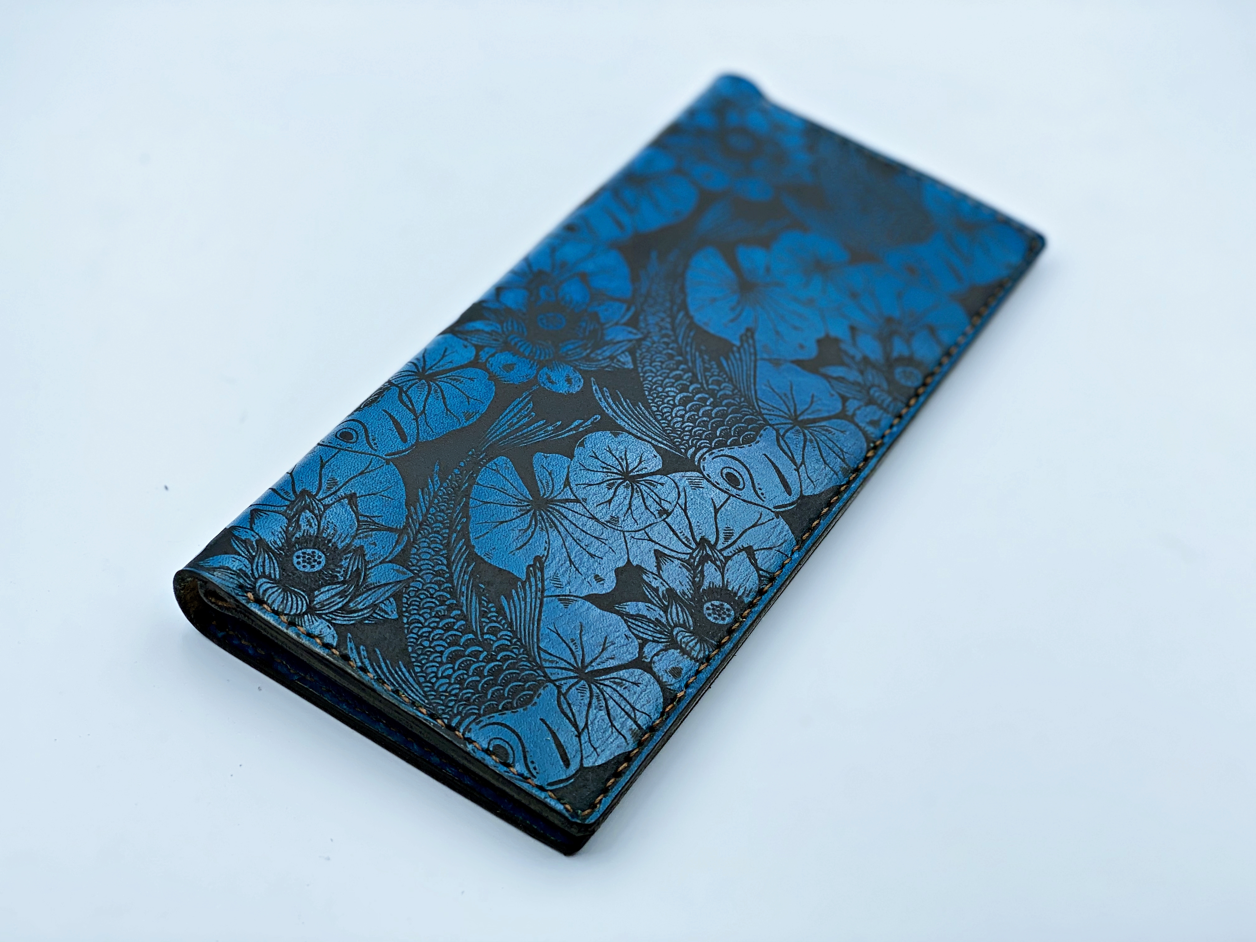 ✨Ví nữ cầm tay da bò handmade họa tiết cá Koi