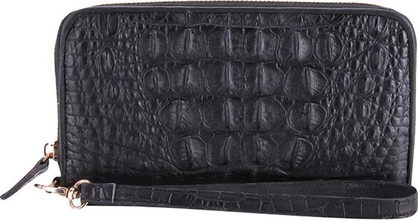 Ví/Bóp nữ Huy Hoàng da bò vân cá sấu 3 gấp màu đen 3106