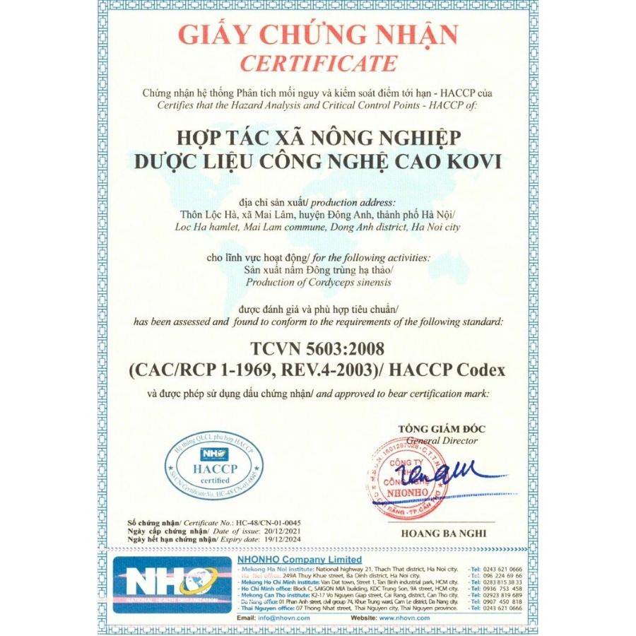 Đông Trùng Hạ Thảo KOVI tự hào là một trong số ít công ty tại Việt Nam có đầy đủ giấy chứng nhận như: