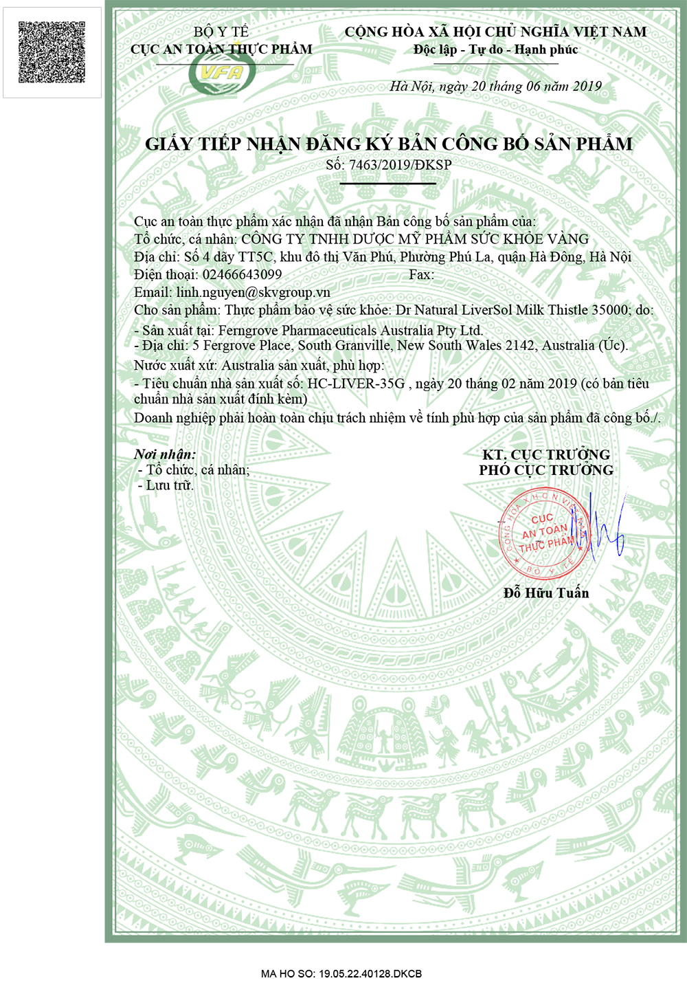 Mua tại TiktokDR NATURAL LIVERSOL MILK THISTLE 35000 Bổ gan Dr Natural Liversol là một sản phẩm chất lượng của tập đoàn dược phẩm Astragrace (Úc). Astragrace nổi tiếng với những sản phẩm thực sự chất lượng và mẫu mã sang trọng. Tất cả sản phẩm của Astragrace được sản xuất tại nhà máy đạt chuẩn GMP và phù hợp với bộ tiêu chuẩn của cục Quản Lý Dược Úc (TGA). THÀNH PHẦN: mỗi viên chứa: