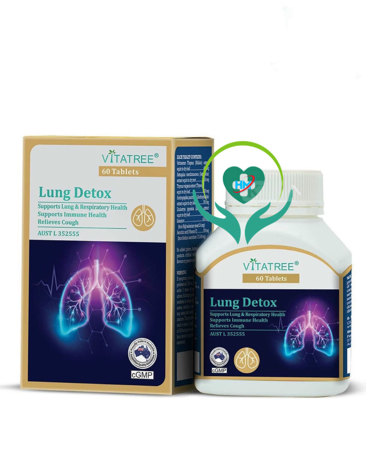 - Tăng cường miễn dịch cho hệ hô hấp và cơ thể ️Các thảo dược được sử dụng để bào chế Vitatree Lung Detox: Xuyên tâm liên: Là vị th thanh nhiệt, giải độc thường dùng trong y học cổ truyền, xuyên tâm liên có tác dụng khángvi khuẩn, virus và giảmviêm. Dược liệu này được dùng để hỗ trợ giảmđau họng, cảm cúm và nhiễm trùng đường hô hấp. Rễ cây hoàng kỳ: Hoàng kỳ có vị ngọt, tính ôn và rễ phơi khô có tác dụng bổ khí. Từ xưa dân gian đã dùng rễ hoàng kỳ hỗ trợ cácbệnh cảm cúm thông thường. Thảo dược này còn có công dụng tăng cường sức đề kháng, hỗ trợ hệ miễn dịch. Lá nhót tây hay “Tỳ bà diệp”: có vị đắng, tính hơi hàn nên có thể trừ nhiệt, làm mát phổi, giảmho do phổi nhiệt, hỗ trợ các chứng cảm sốt, ho khan. Cỏ xạ hương (Thyme): chứa tinh dầu thơm và chất flavonoid chống oxy hóa, tăng cường khả năng miễn nhiễm của đường hô hấp đối với virus hay vi khuẩn. Cỏ xạ hương giúp giảmho, giảmkhó thở, chốngco thắt phế quản, làm dịu sự đau rát họng. Y học sử dụng cỏ xạ hương để giảmho, cảm lạnh, cúm, viêm phế quản, hen phế quản. Hướng dẫn sử dụng: