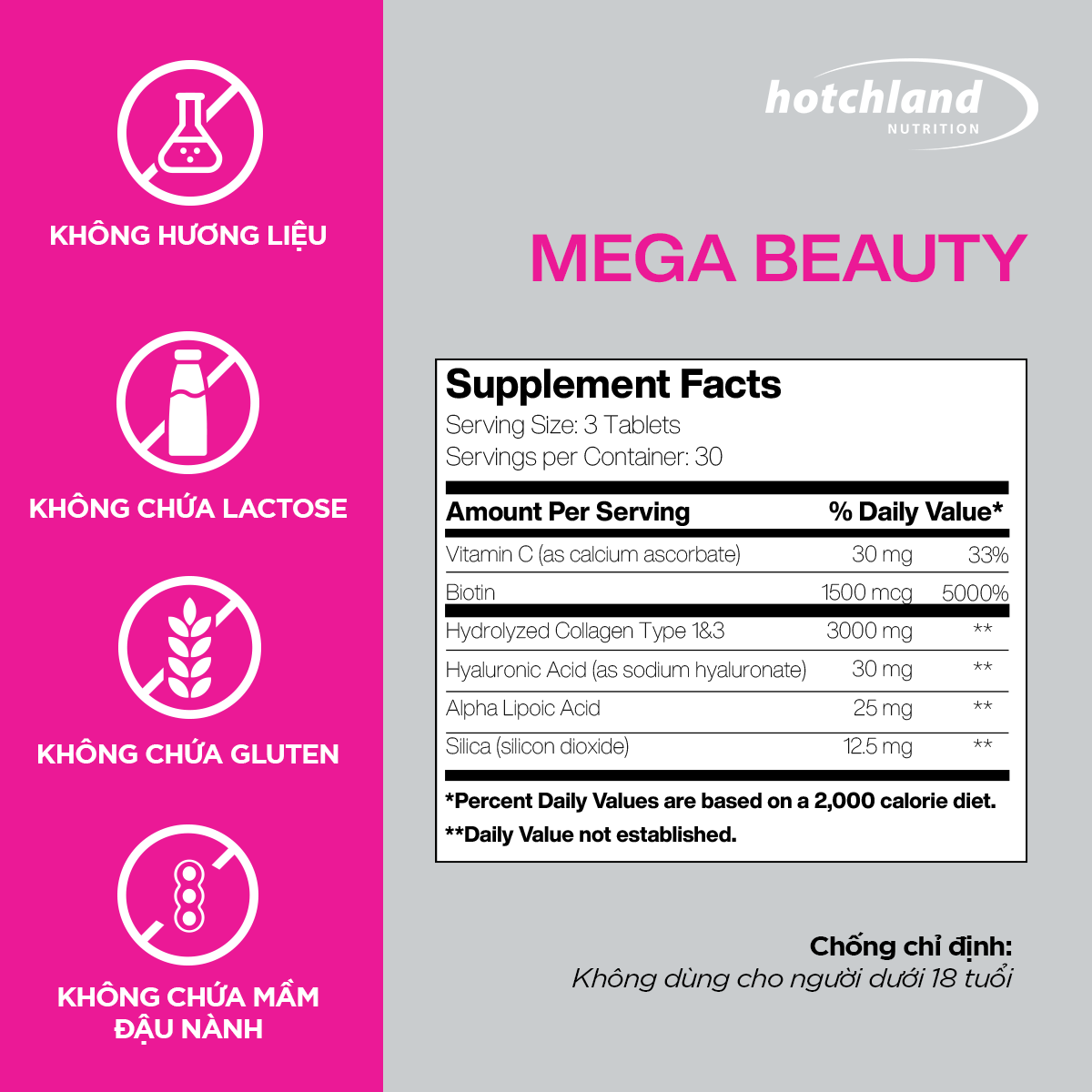 - Đọc kỹ hướng dẫn sử dụng trước khi dùng. Hotchland Nutrition một thương hiệu thực phẩm bảo vệ sức khỏe hàng đầu Mỹ được người tiêu dùng trên khắp thế giới yêu thích và tin dùng, trong đó có Việt Nam. Với sản phẩm đa dạng, sản xuất tại nhà máy hơn 50 năm kinh nghiệm đạt tiêu chuẩn cGMP của Cục quản lý Thực phẩm và Dược phẩm Hoa Kỳ (FDA) và chứng nhận NSF, HALAL. Và quy trình sản xuất nghiêm ngặt, giúp đảm bảo độ tinh khiết và hàm lượng cao nhất cho các sản phẩm, đồng thời an toàn và hiệu quả cho người dùng. Trong 10 năm qua được sự tin tưởng và gắn bó từ các bác sĩ, dược sĩ trên toàn quốc cùng mạng lưới phân phối rộng, uy tín và chuyên nghiệp - Hotchland Nutrition Việt Nam luôn mong muốn đem lại những giải pháp tốt nhất cho việc chăm sóc sức khỏe - vẻ đẹp của bạn và gia đình bạn. CHÚNG TÔI CAM KẾT Sản phẩm được nhập khẩu chính hãng, đạt tiêu chuẩn về chất lượng và an toàn. Luôn sẵn sàng giải đáp mọi thắc mắc về sản phẩm cũng như dịch vụ của shop nhanh nhất. Xin quý khách hãy chat ngay với shop để được tự vấn và hỗ trợ chi tiết. Hỗ trợ đổi trả sản phẩm theo chính sách của Tiki.
