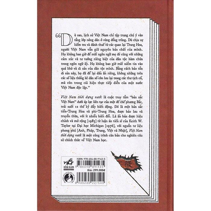 Việt Nam thời dựng nước là cuộc truy tầm "bản sắc Việt Nam" dưới áp lực liên tục của một đế chế phương Bắc, trải suốt 12 thế kỷ đầy biến động. Đó là một bản sắc tiền-Trung Hoa và phi-Trung Hoa, được bảo lưu và truyền thừa, với ít nhiều biến đổi. Là ấn bản được hiệu chỉnh và mở rộng [1983] từ luận án tiến sĩ của Keith W. Taylor tại Đại học Michigan [1976], với nguồn tư liệu phong phú [Anh, Pháp, Trung, Việt và Nhật], Việt Nam thời dựng nước là một công trình căn bản cho nghiên cứu sử chính thức về Việt Nam học .