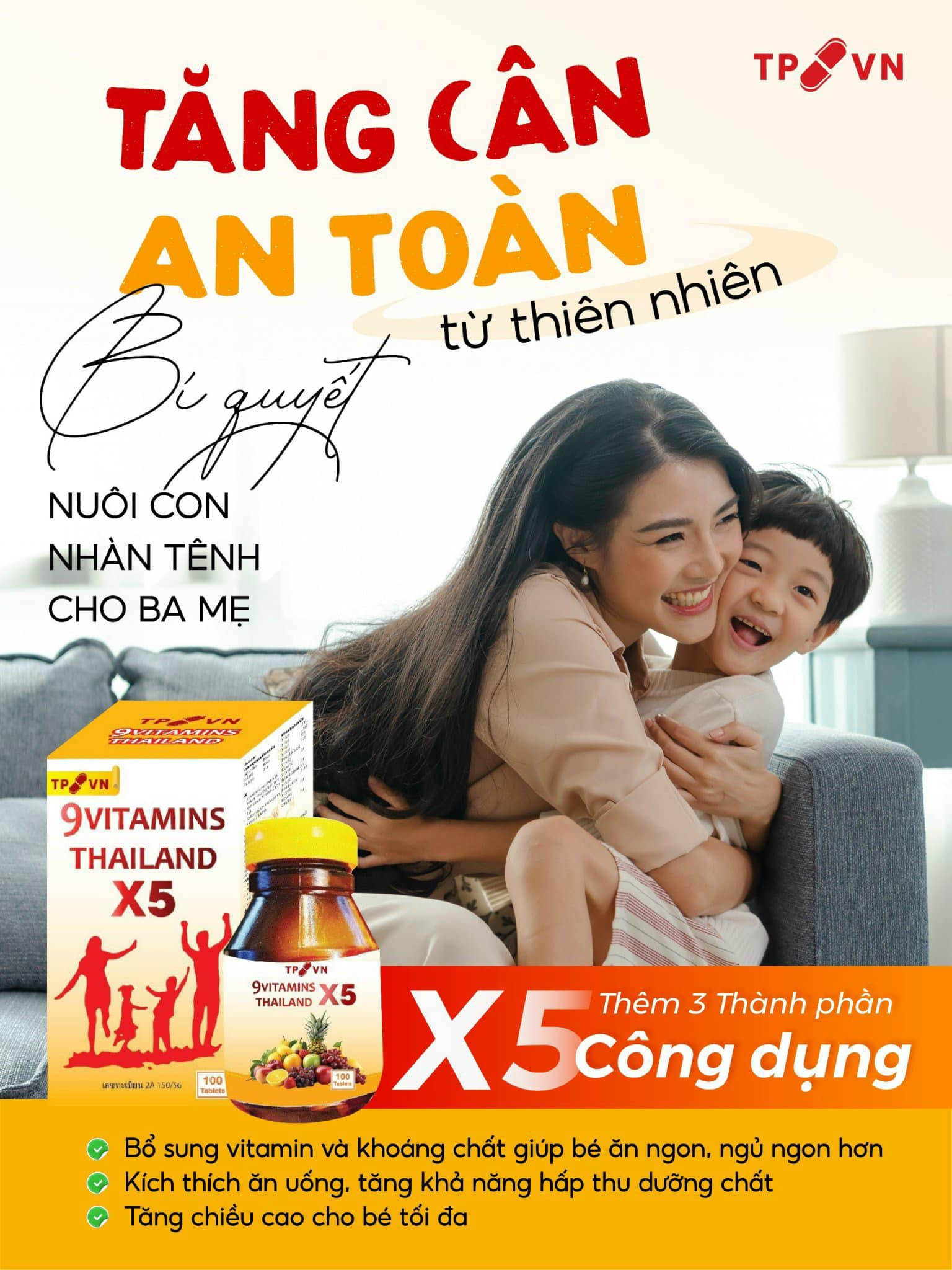 Viên uống Vitamin TP X5 Thái Lan - 100 viên, mẫu mới, date mới - Tăng 2-4 kg / tháng - Dùng cho người từ 3 - 60 tuổi, phụ nữ sau sinh 6 tháng