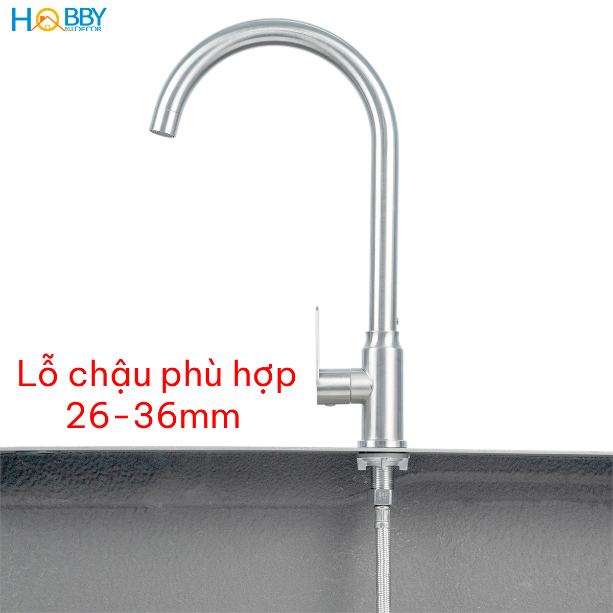 ✨Vòi chậu rửa chén thân lạnh inox 304 kèm dây cấp Hobby home decor RL3