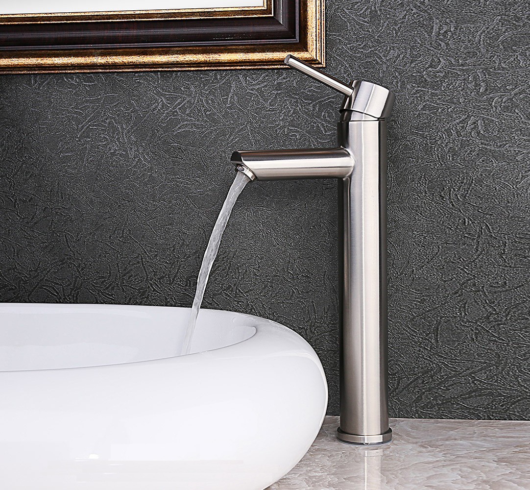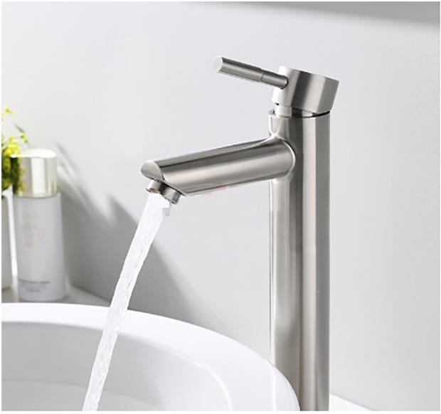 Thiết kế thân vòi cao khác biệt so với các loại vòi thông thường thích hợp với các loại chậu dương bàn tạo không gian mới lạ, hiện đại.