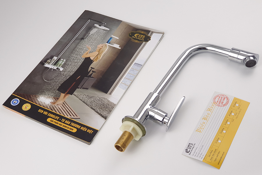 Vòi rửa chén lạnh Đồng mạ Chrome Eurolife EL-T015 (EL-RC04)* Hãng sản xuất : Eurolife Việt Nam* Chất liệu : Sản phẩm được đúc trọng lực bằng hợp kim đồng 61%, mạ Chrome và Niken (Ni -10micro, Cr-0.3m...