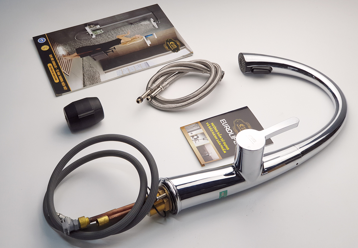 Vòi rửa chén nóng lạnh Đồng mạ Chrome Eurolife EL-KM07 (Trắng bạc)* Hãng sản xuất : Eurolife Việt Nam* Chất liệu : Sản phẩm được đúc trọng lực bằng hợp kim đồng 61%, mạ Crome 3 lớp sáng bóng, không ...