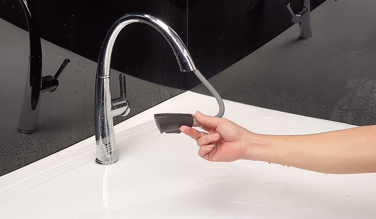 Đầu vòi được thiết kế với công nghệ dòng nước xoáy, tạo bọt, chống văng bắn và tiết kiệm nước