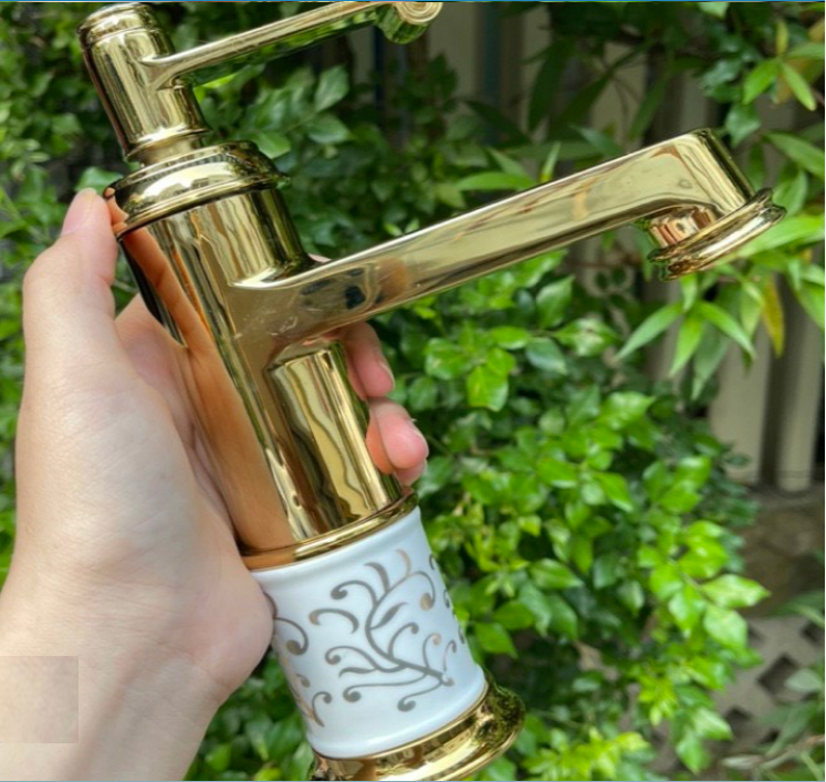 Vòi rửa mặt mạ vàng bọc sứ hoa văn GR053 Mã sản phẩm: GR053
