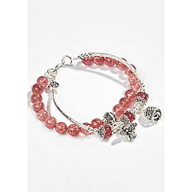Thạch anh dâu tây mix charm bạc. Vòng đá Thiên Cầm