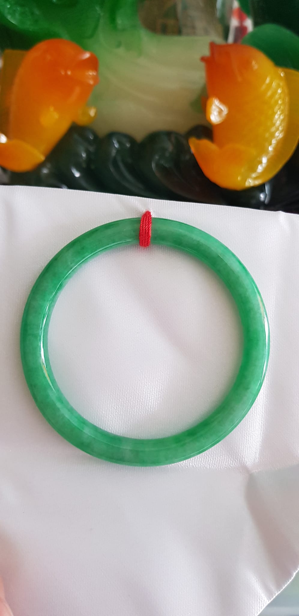 CHIẾC VÒNG TAY PHONG THỦY ĐÁ CẨM THẠCH LÝ ĐẸP K 54MM x DẦY 8MM MÀU XANH LÁ ĐỀU BÓNG ĐẸP NỮ MỆNH HỎA MỘC NỮ CÂN NẶNG 53kg đến 64kg Đeo Đẹp Tay ạ