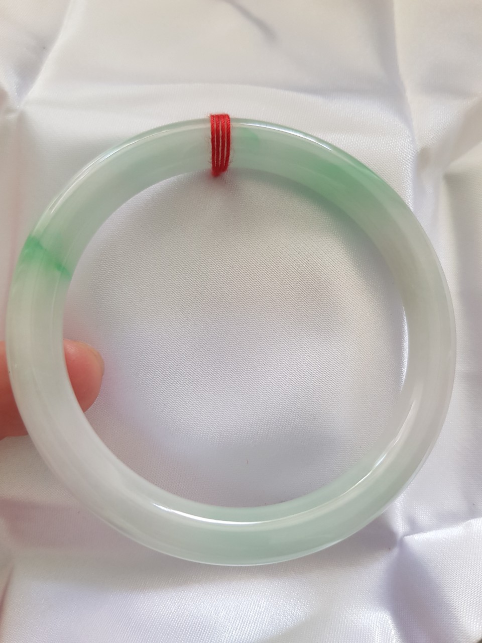 Vòng cẩm thạch tự nhiên mới Tr Lý Sao 58mm x cọng 8mm màu trắng bóng mượt xanh lý nhẹ rất xinh hợp với các Chị Em thân yêu.