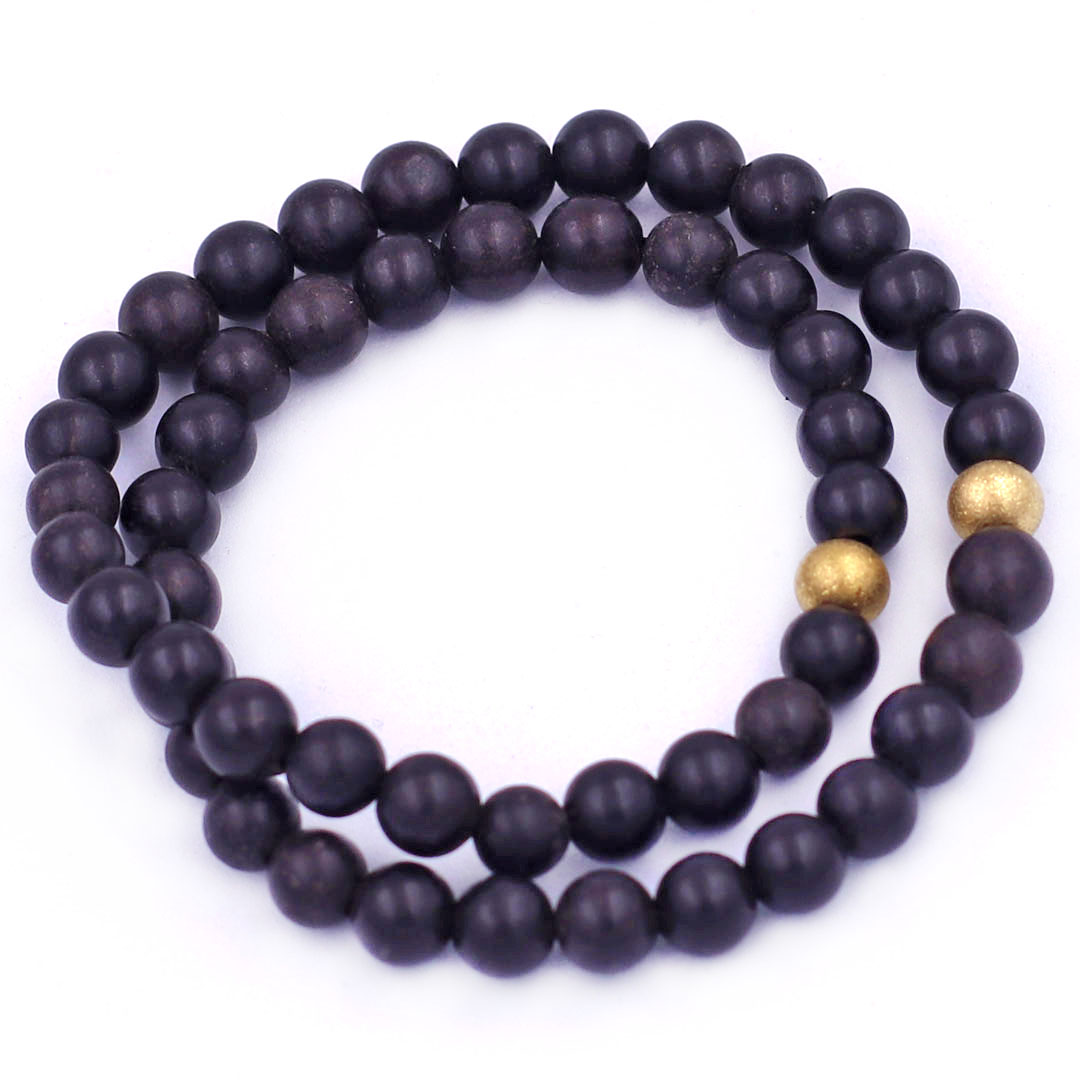 ✨Vòng Chuỗi Đôi 6 Ly Gỗ Mun Charm Bi Inox VGMHBD