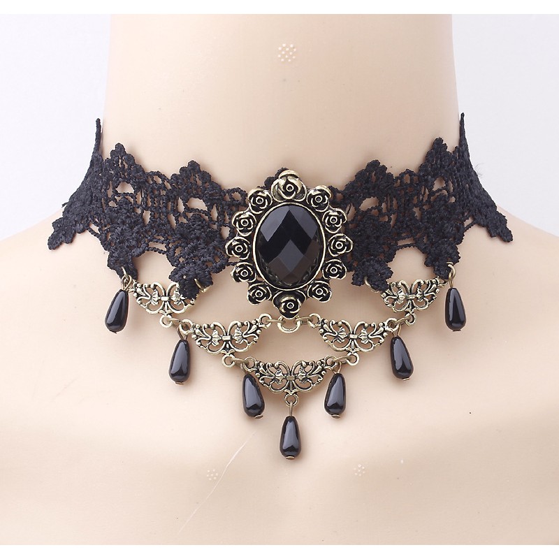 ✨Vòng cổ ren đa phong cách mix đá đen ấn tượng dạ tiệc