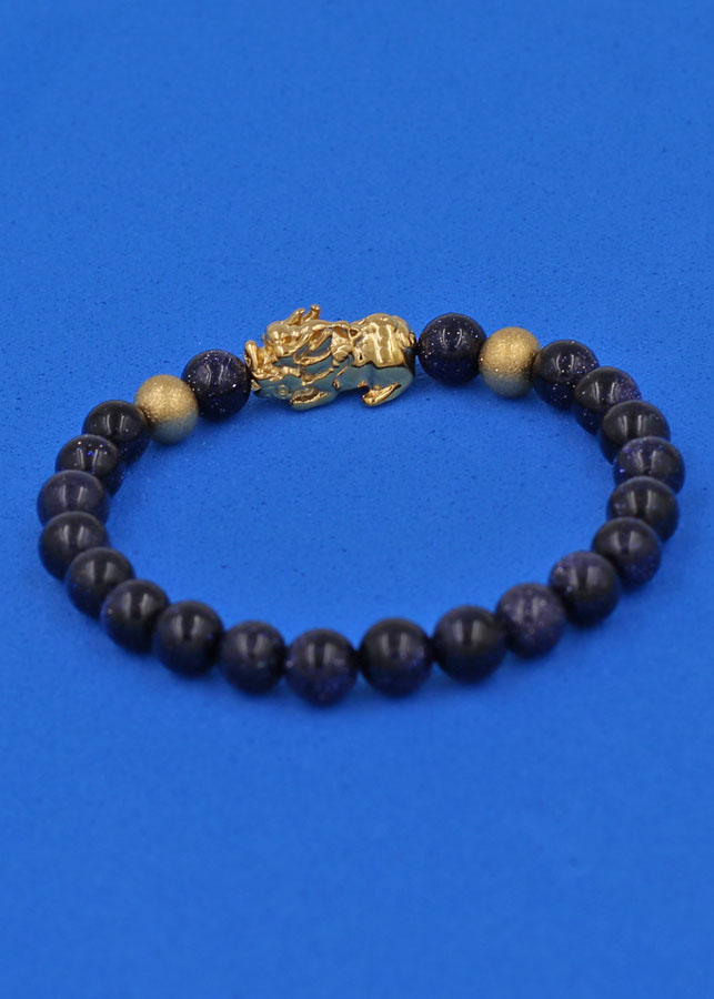 ✨Vòng đeo tay đá Lam Sa 6 ly cẩn Tỳ Hưu inox vàng VLSTHHBV6