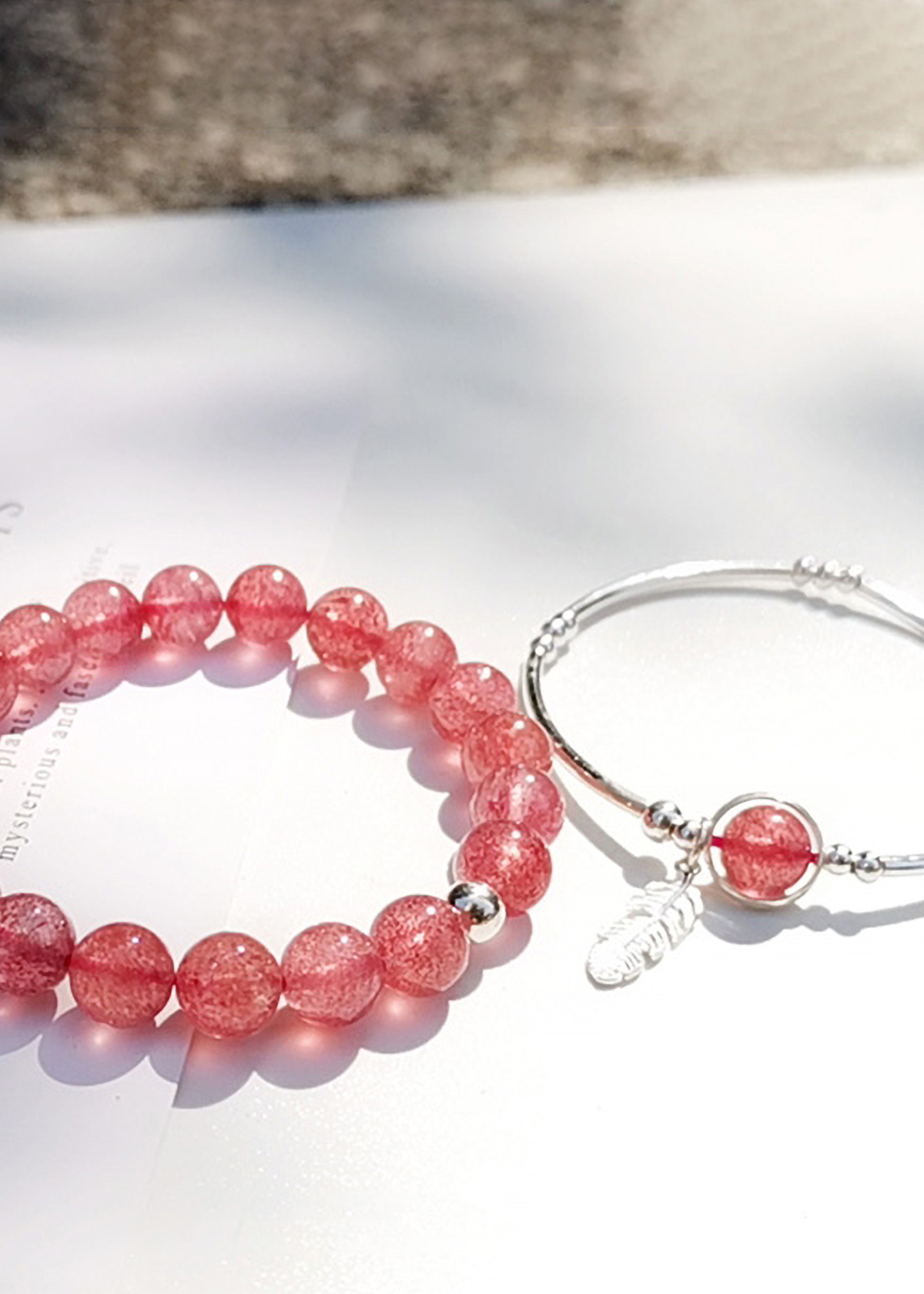 Vòng tay đá Thạch Anh Dâu mang nét đẹp nhẹ nhàng, nữ tính và hết sức duyên dáng, giúp người phụ nữ trở nên nổi bật và ấn tượng hơn trong mắt những người xung quanh.