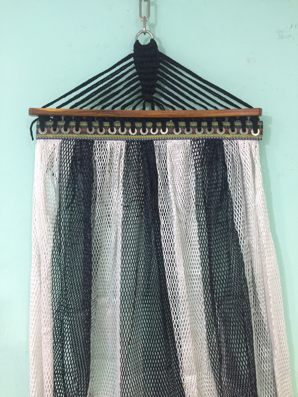 Võng bán nguyệt gỗ nhỏ – Lưới dải gỗ 60cm – Sản phẩm mang thiết kế độc đáo, kết hợp chất liệu gỗ tự nhiên và lưới dải gỗ chắc chắn, tạo cảm giác thư