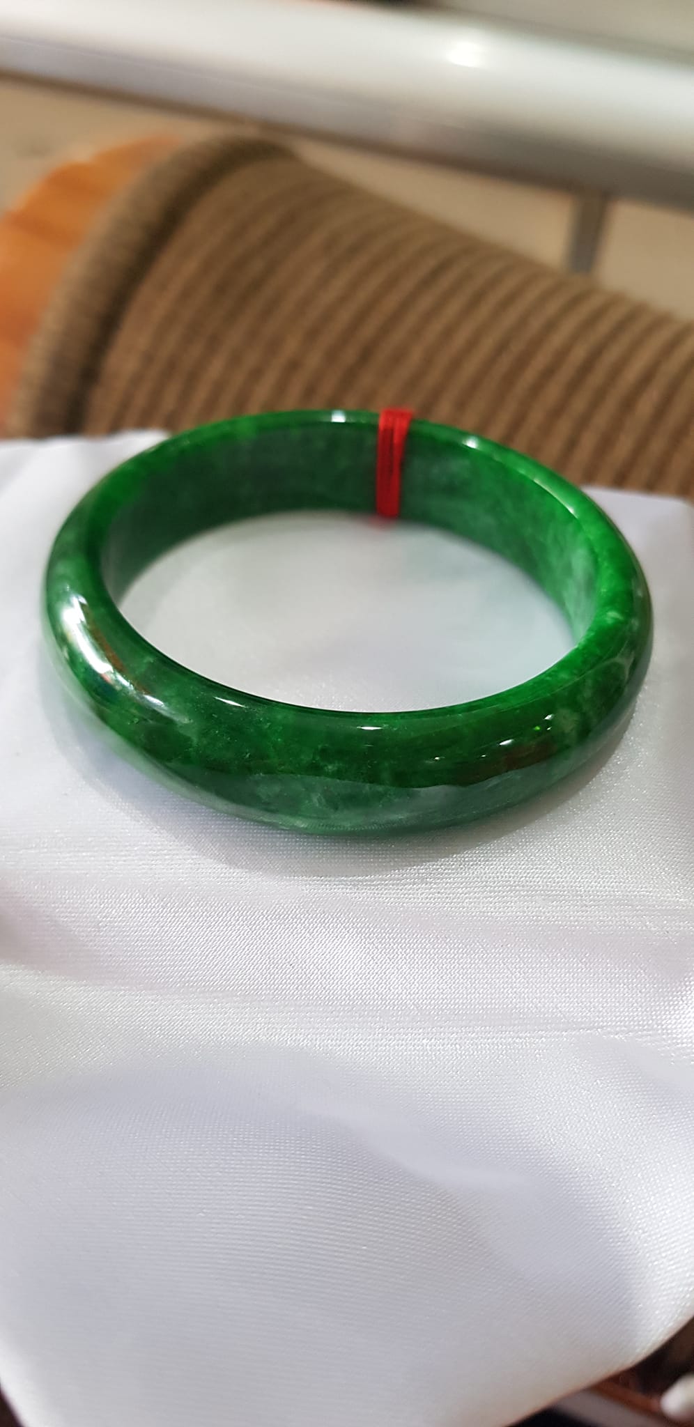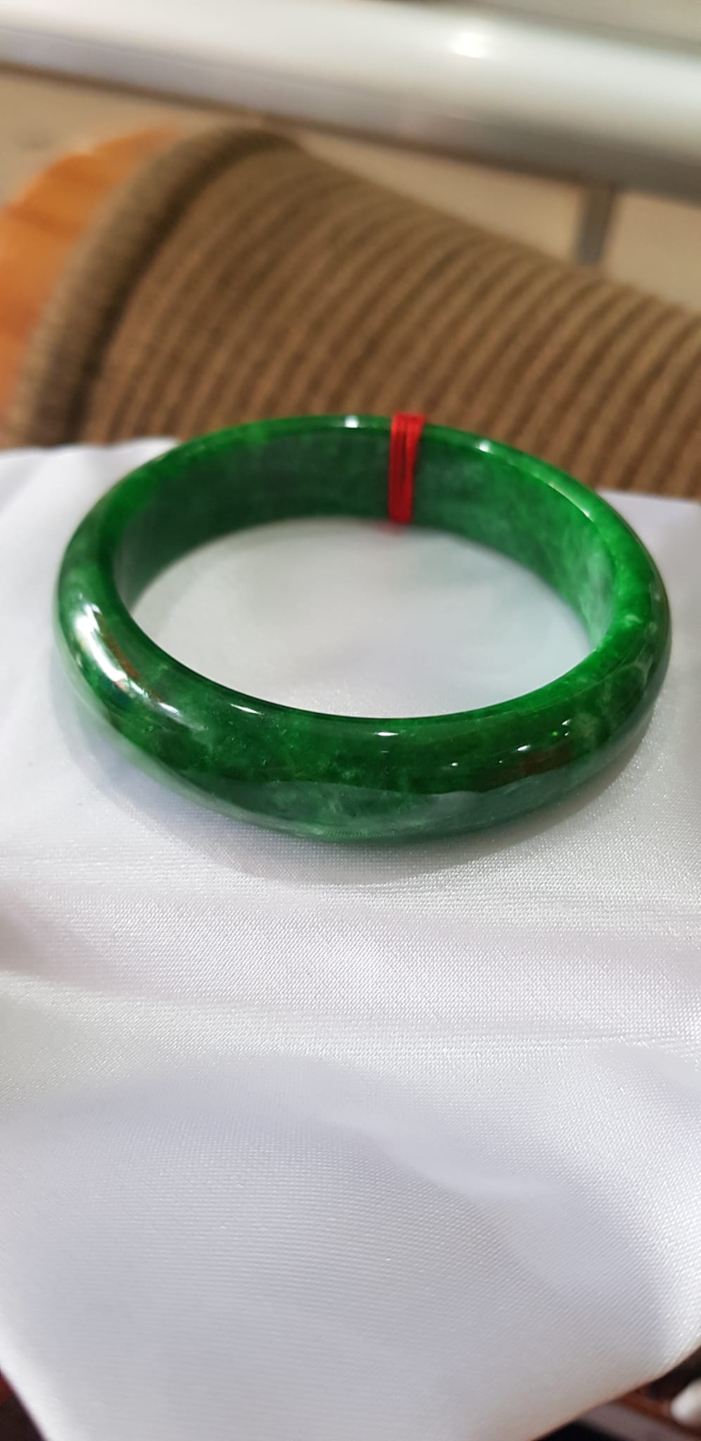 Vòng cẩm thạch Lý T 54mm x Dầy 7mm Màu Xanh lá tươi bóng mảnh khảnh đẹp hợp Nữ mệnh Mộc Hỏa 53kg - 62kg đeo ạ Sản phẩm này là tài sản cá nhân