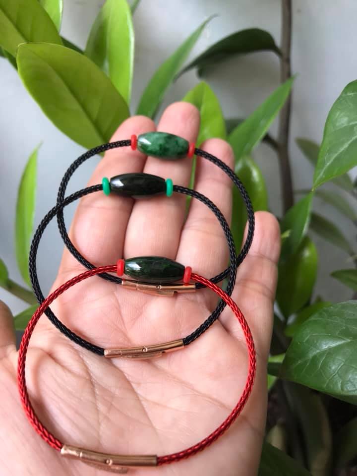Vòng Tay Đá Cẩm thạch lu xanh dài đậm nhỏ dây đen đỏ kiểu xinh xắn đẹp lắm luôn