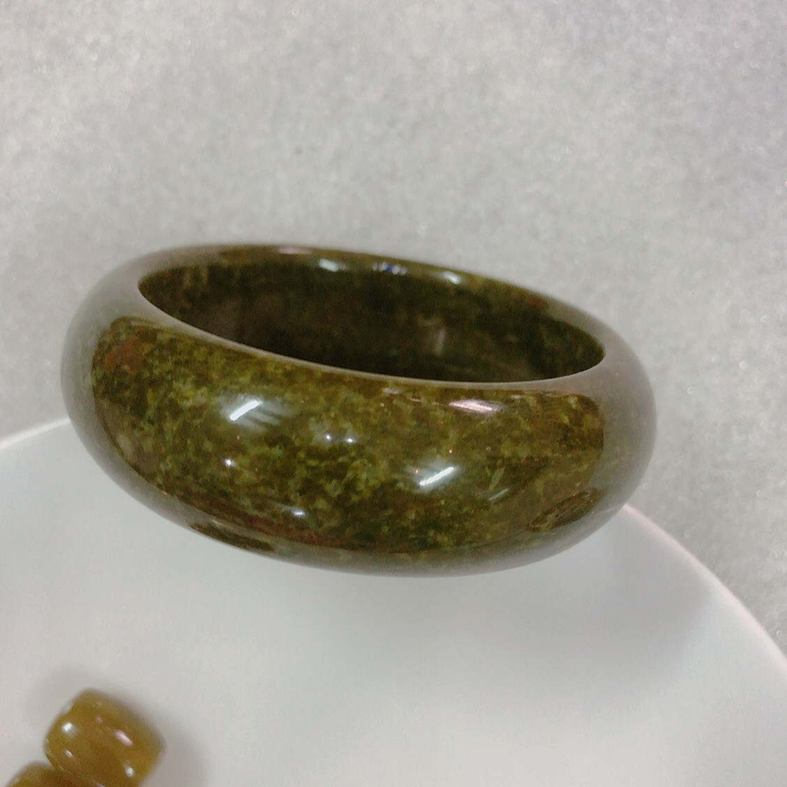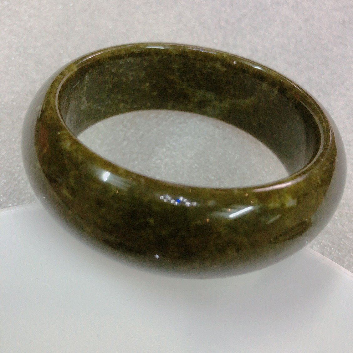 Vòng Tay Nữ Ngọc Cẩm Thạch tự nhiên TR LÝ 49mm x cọng 7,2mm ngọc trắng bóng điểm lý xanh rêu