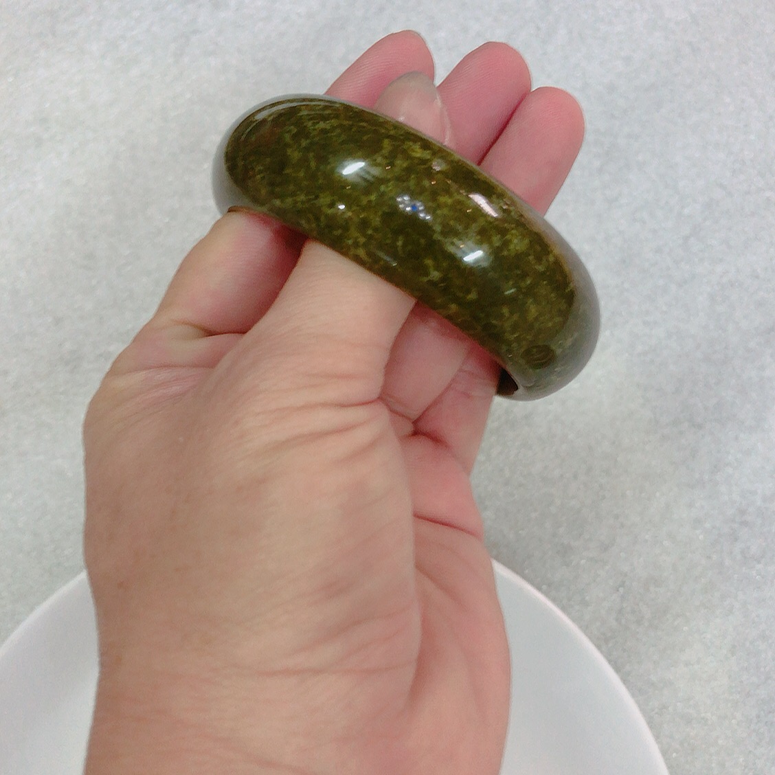 Vòng tay Nữ Đá Cẩm Thạch mới TR Lý 57 mm x cọng 7,5mm Màu Xanh lý tươi trắng 2 bên đều vòng đẹp Nữ 55kg - 64kg đeo đẹp món quà tặng chính mình