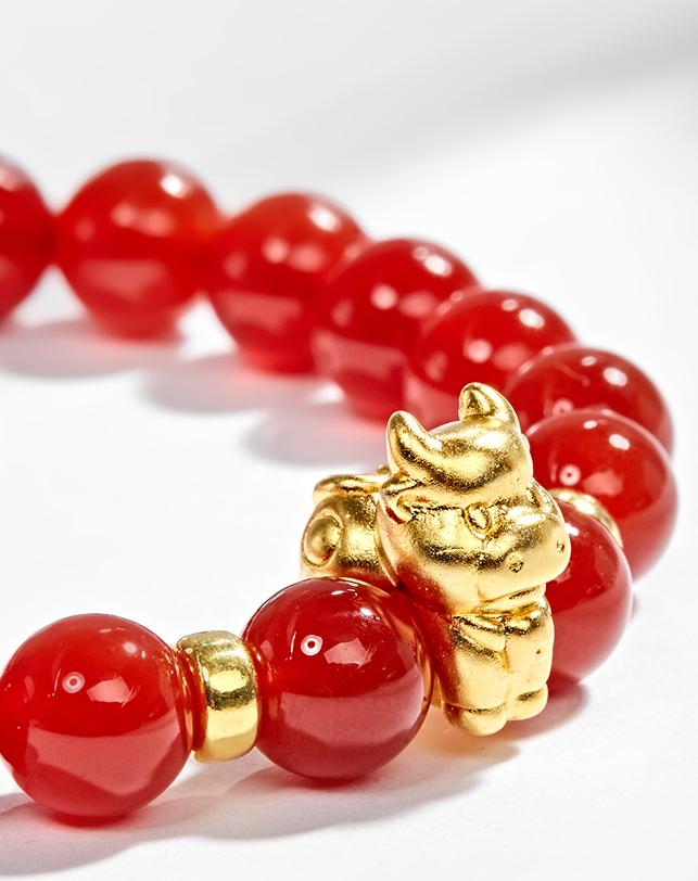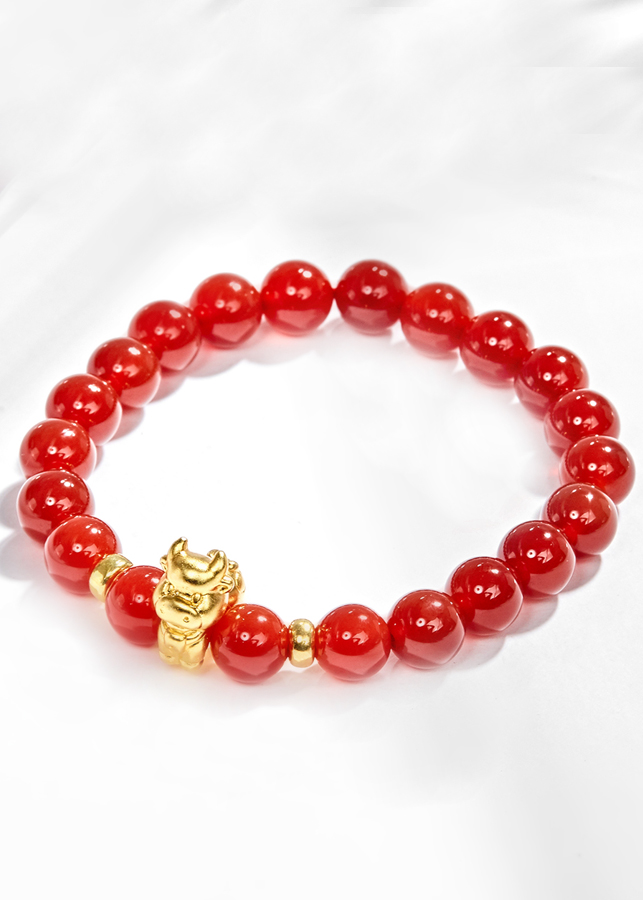 Vòng Tay Đá Mã Não Đỏ Charm Tuổi Sửu Bạc Mạ Vàng 24K Ngọc Quý Gemstones: Phù hợp với người Mệnh Hỏa – Mệnh Thổ