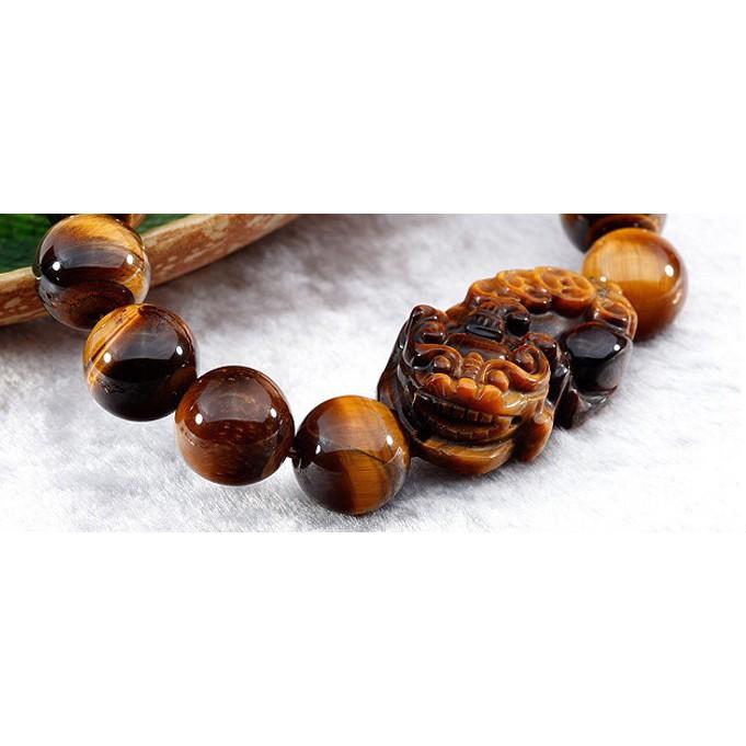vòng đá mắt hổ nâu đỏ 12 ly mix tỳ hưu cao cấp I Trang sức vật phẩm phong thủy