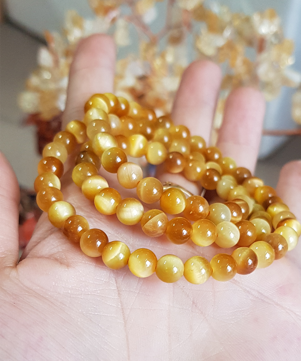 Vòng tay đá mắt hổ vàng anh vip 6mm quấn tay 3 vòng đẹp màu vàng anh tươi đẹp Shop Sunny Quận 8 #6mm