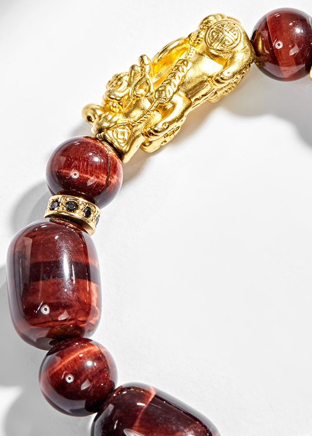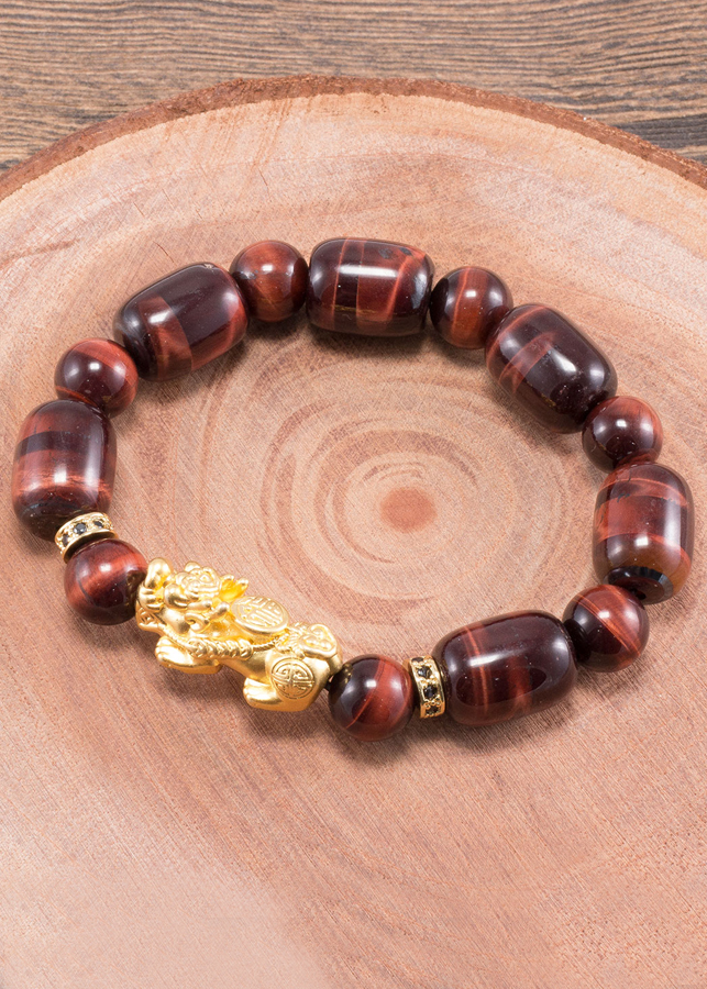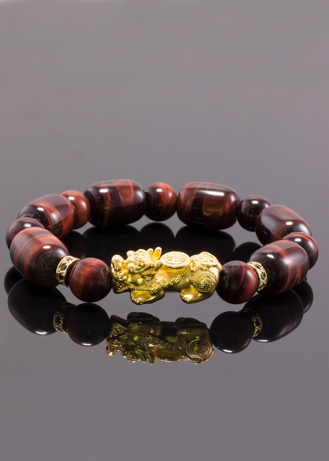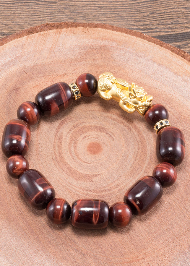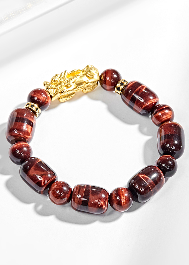 - Vòng tay đá thạch anh mắt hổ nâu đỏ phối tỳ hưu bạc mạ vàng (12mm) hợp với người mệnh Hoả và mệnh Thổ, mang đến nhiều may mắn và giúp người đeo chạm được đến với năng lượng của vũ trụ.