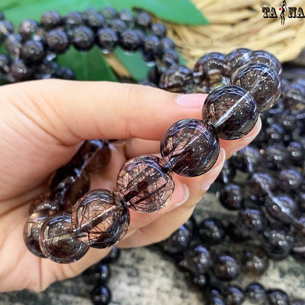 Vòng tay đá thạch anh tóc đen chuẩn đá thiên nhiên chưa qua bất kỳ xử lý nào, cho ra màu sắc thật, rất tốt về mặt phong thủy