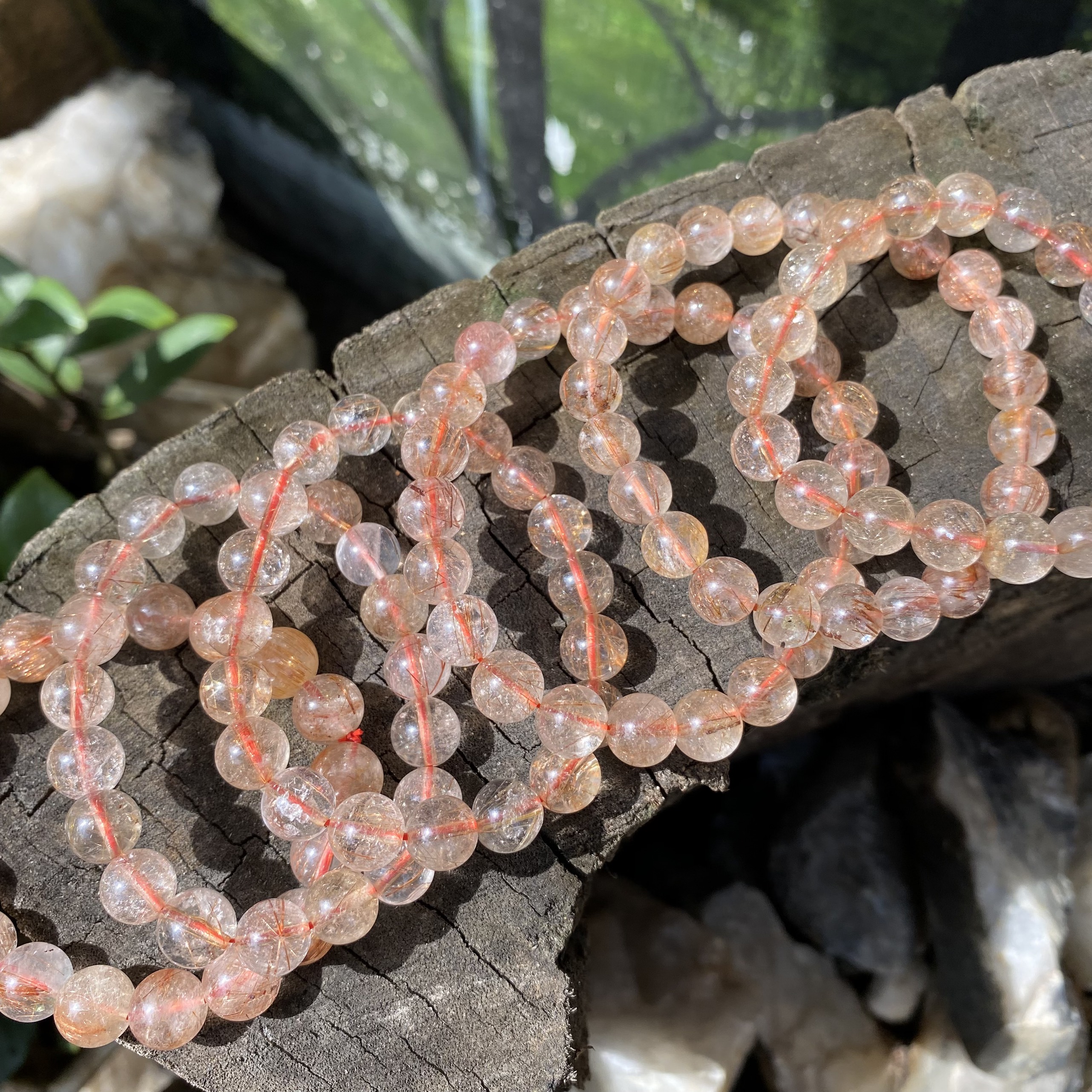 Chiêm ngưỡng vẻ đẹp lung linh dưới nắng của Vòng tay đá thạch anh tóc đỏ 8 ly, only 850k