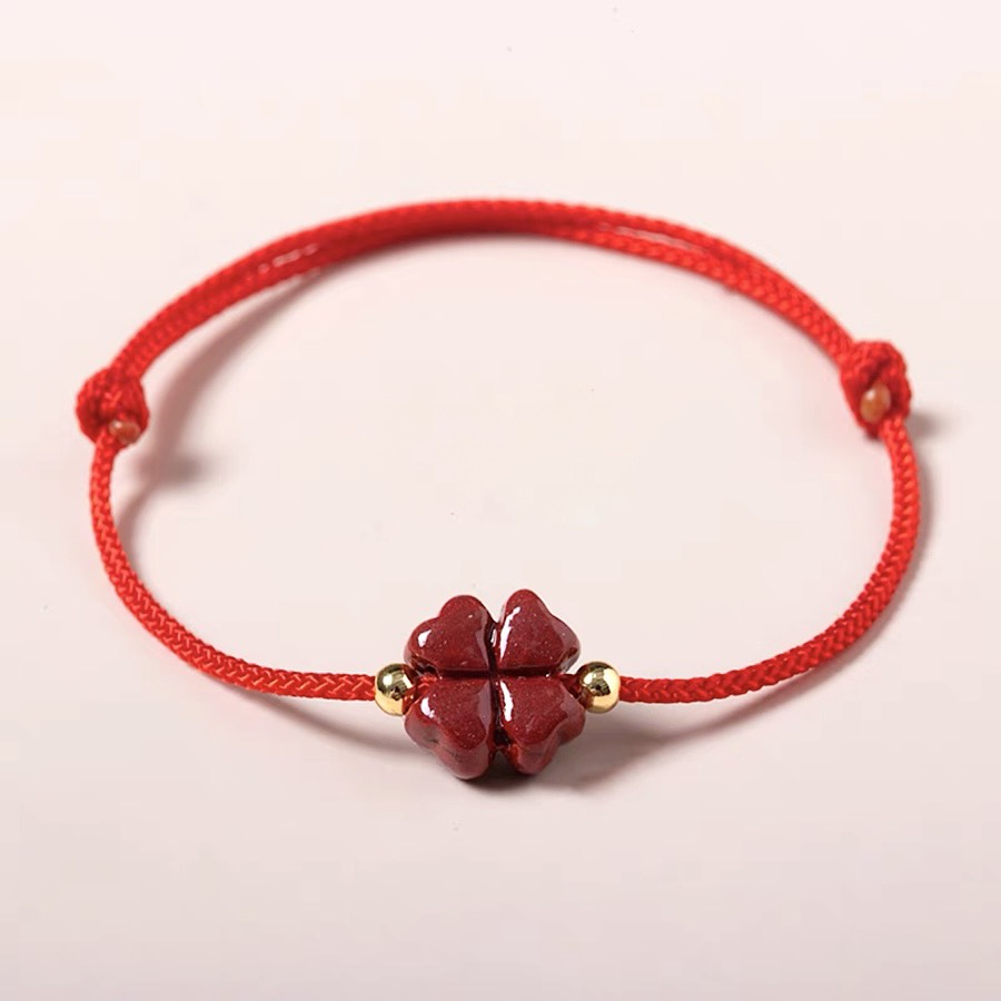 ✨VÒNG TAY DÂY ĐỎ CỎ 4 LÁ CHU SA MAY MẮN TRONG CUỘC SỐNG