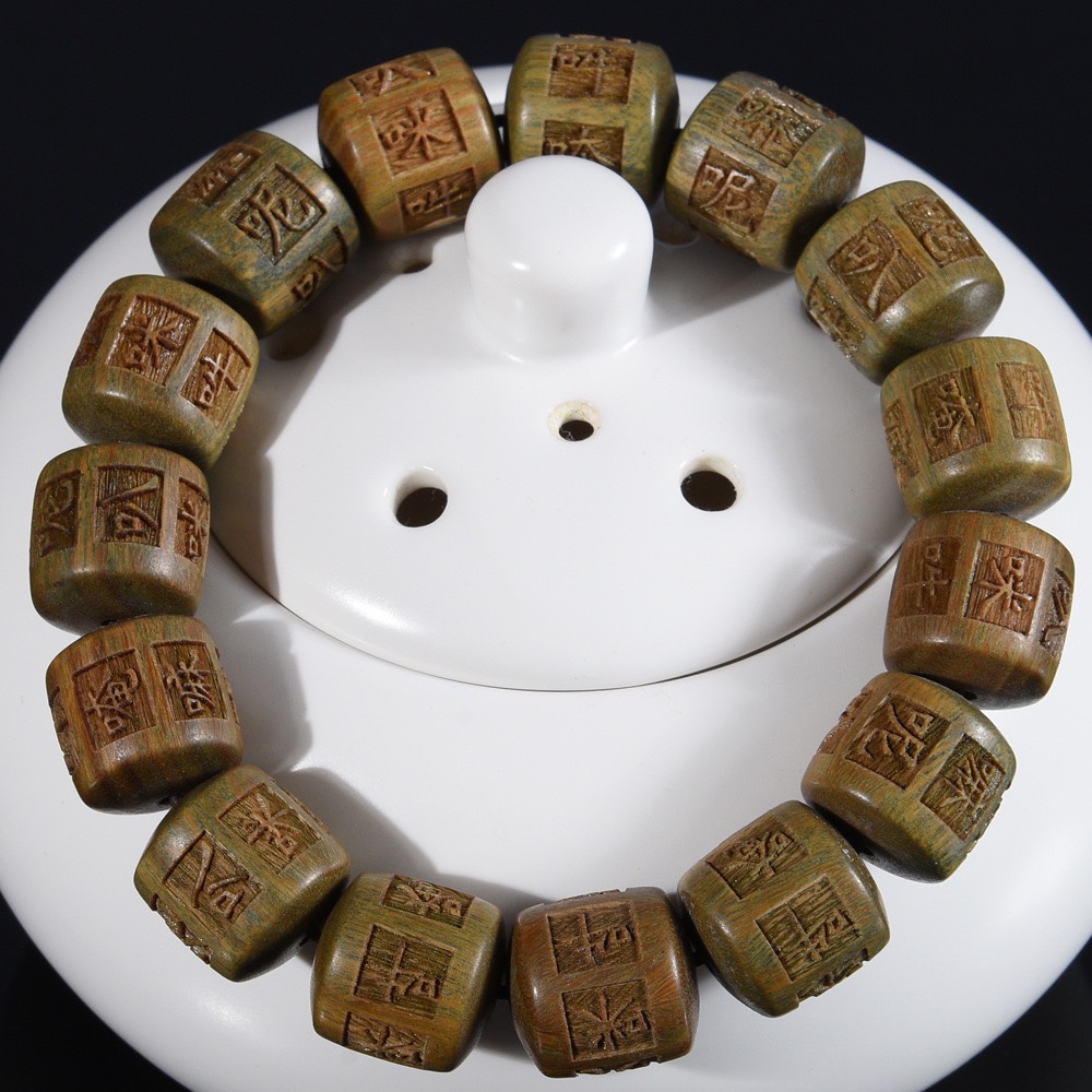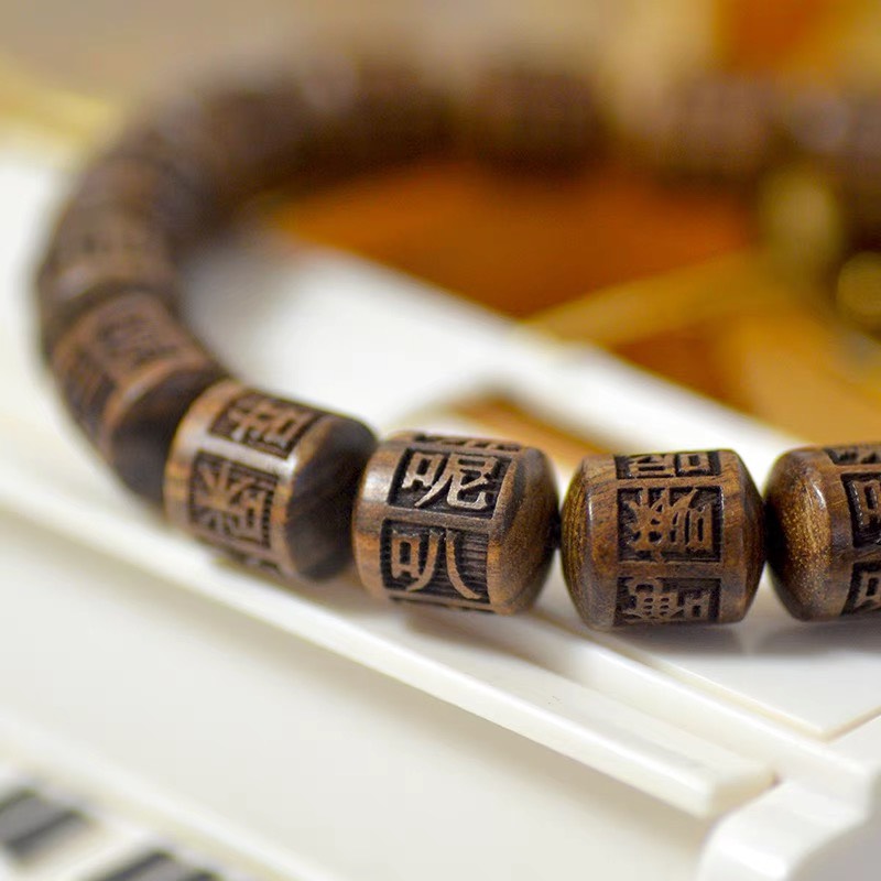 ✨VÒNG TAY GỖ ĐÀN HƯƠNG XANH 15mm KHẮC LỤC TỰ OM MANI TIẾNG TRUNG LỜI NGUYỆN CẦU HẠNH PHÚC
