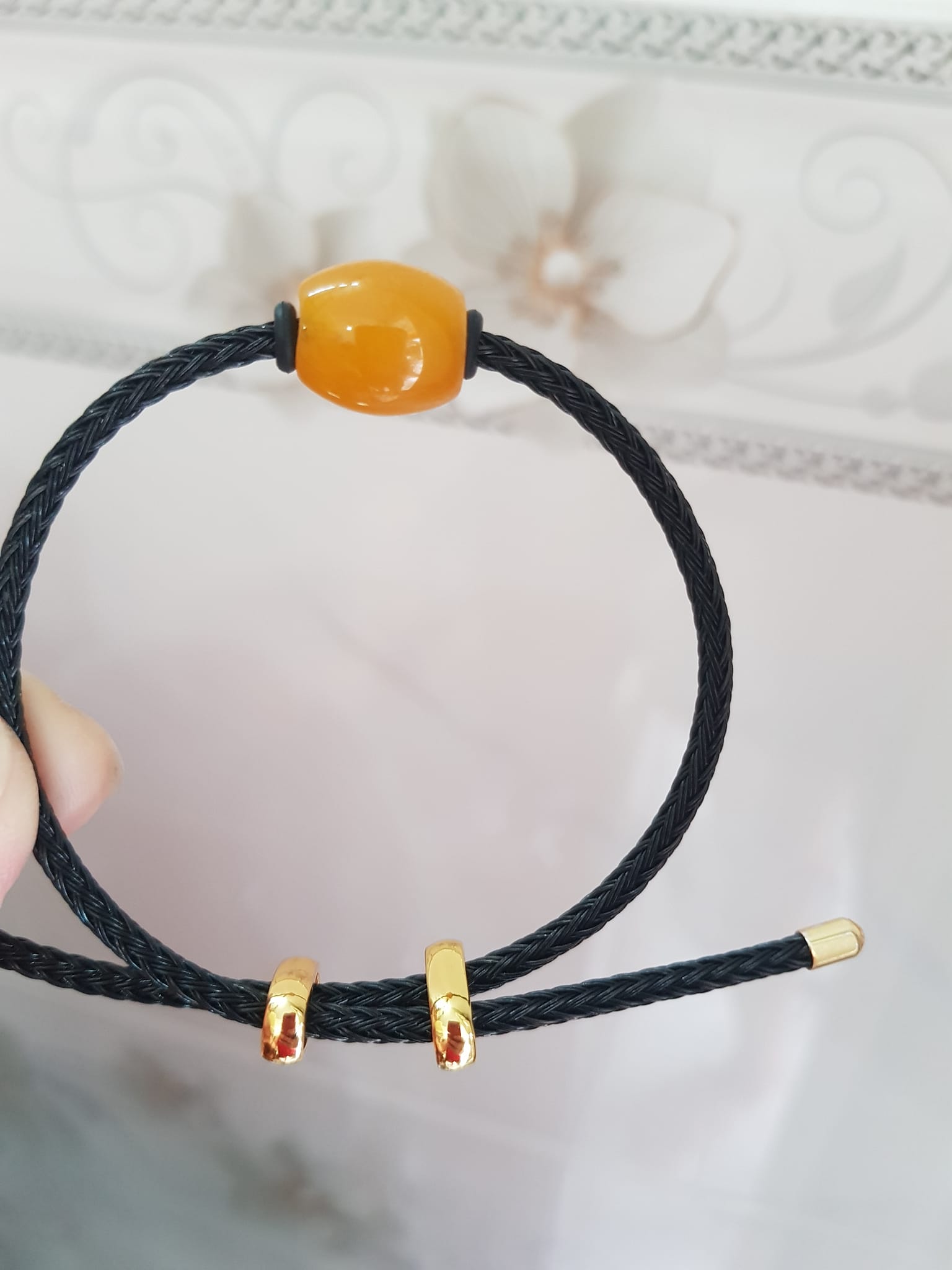 đá mã não vàng anh đẹp với dây đen kiểu rút
